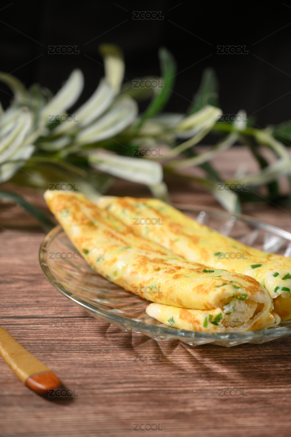 桌面上的盘子里的美味可口的煎鸡蛋饼