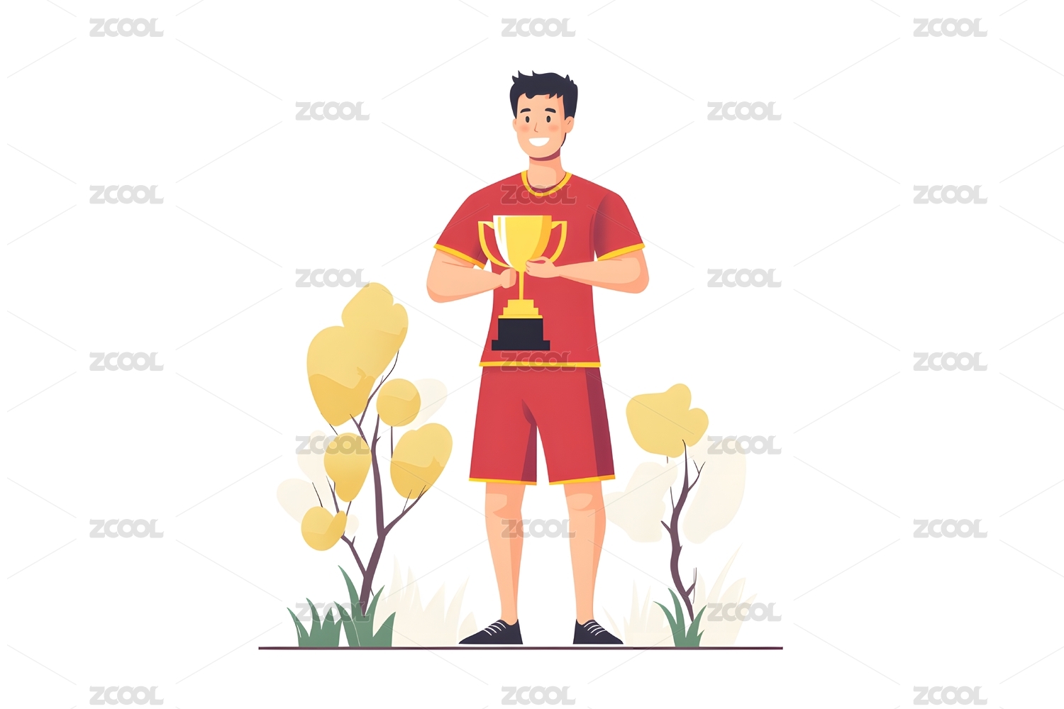 人物,插画,平面,扁平,色块,极简风,手绘,纯色背景,运动服,奖杯