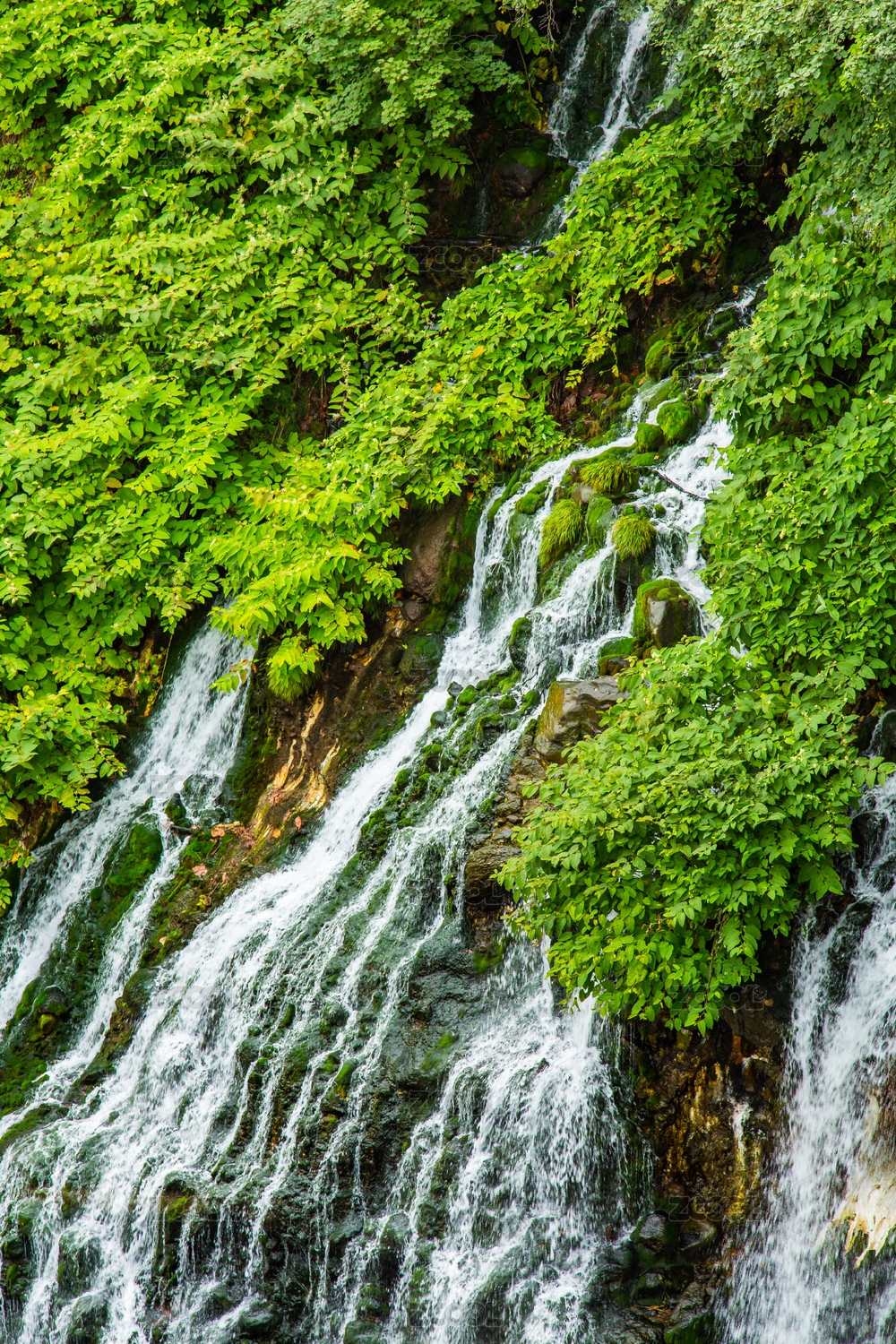 日本北海道美瑛町美瑛川上的白须瀑布景色