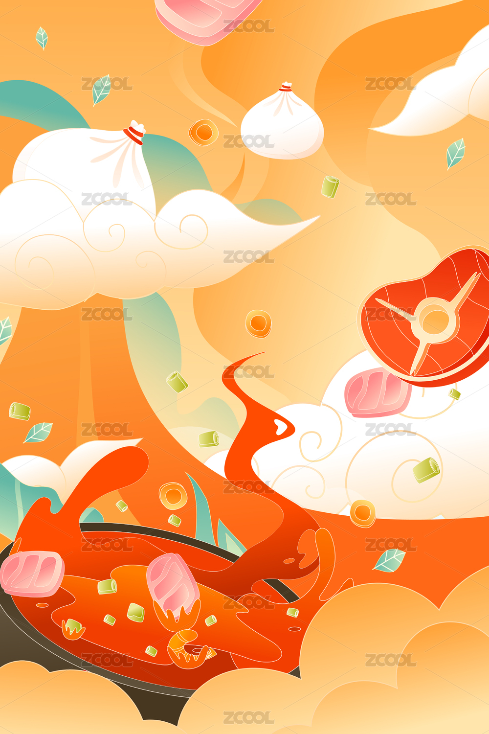 火锅美食矢量插画