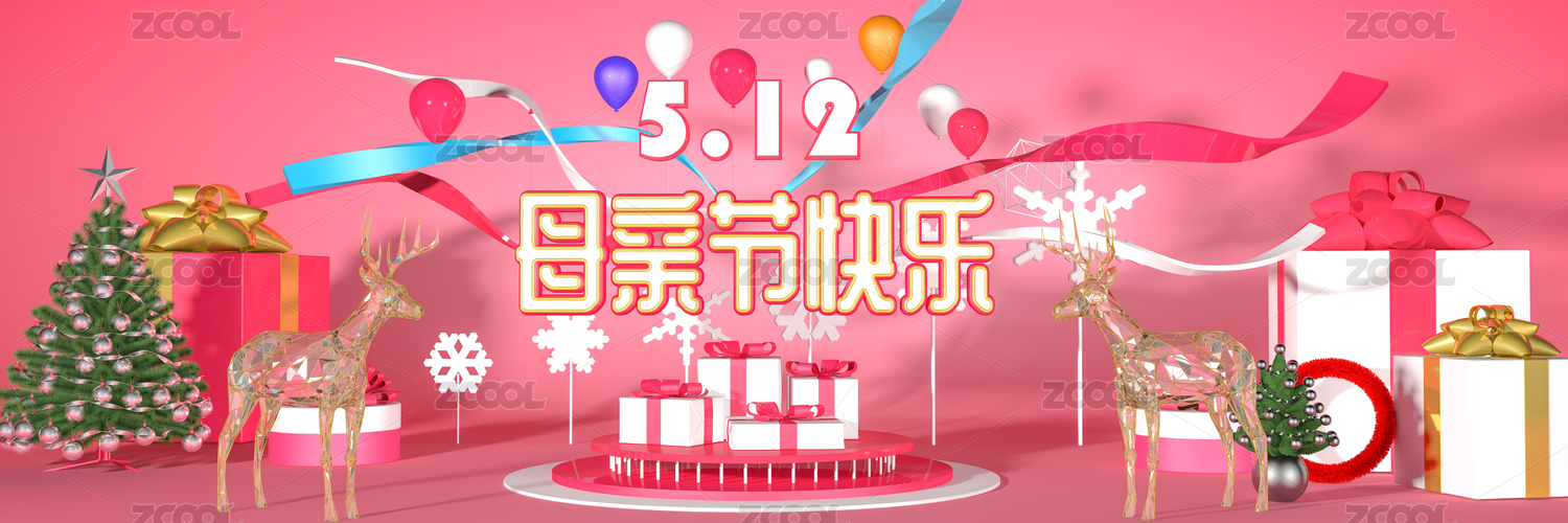 爱心鲜花母亲节快乐妇女节粉红色背景