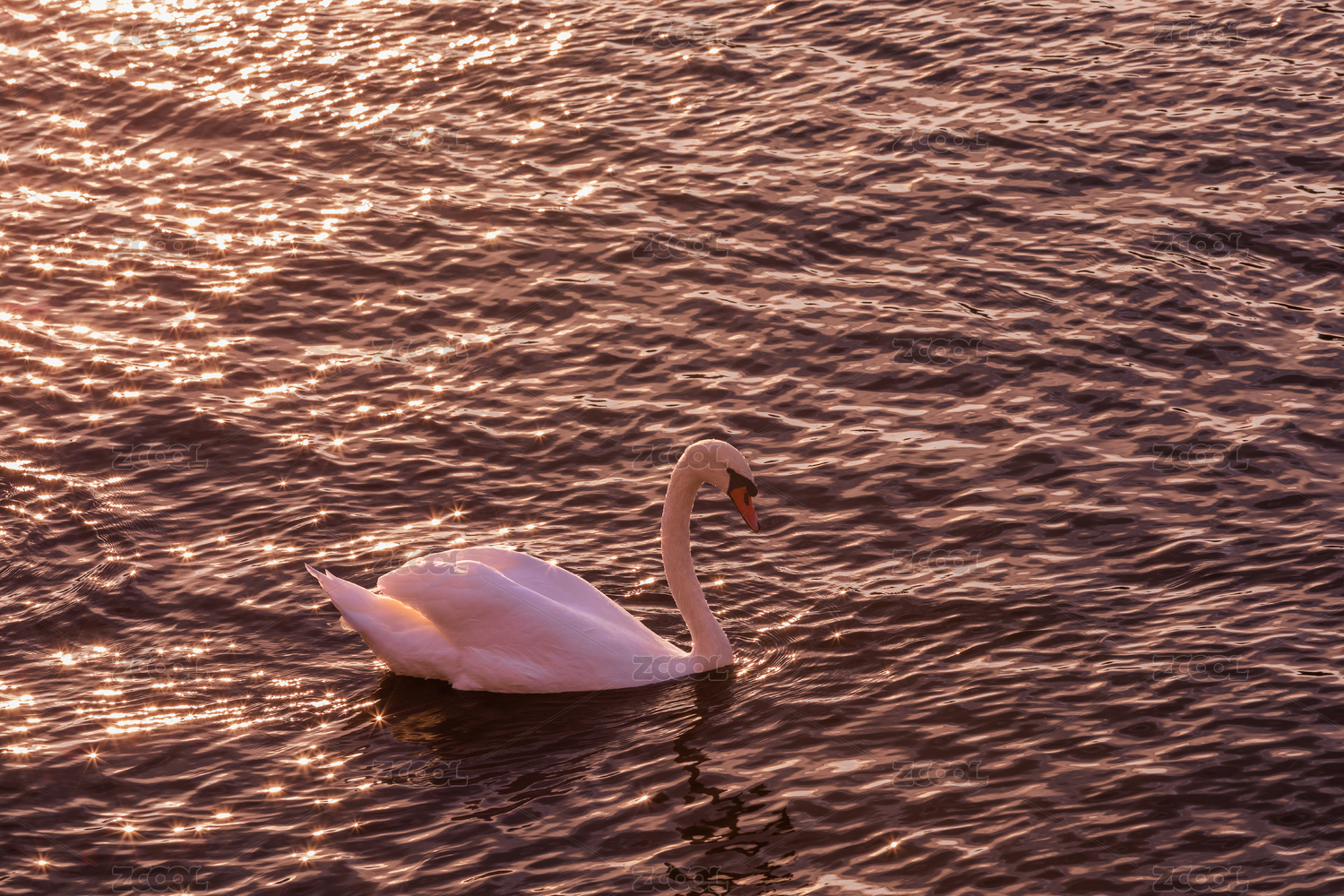 捷克首都布拉格的天鹅清晨沐浴在阳光里