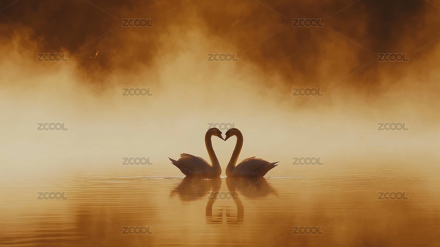 中国新疆伊犁天鹅湖里冬天成双成对的天鹅
