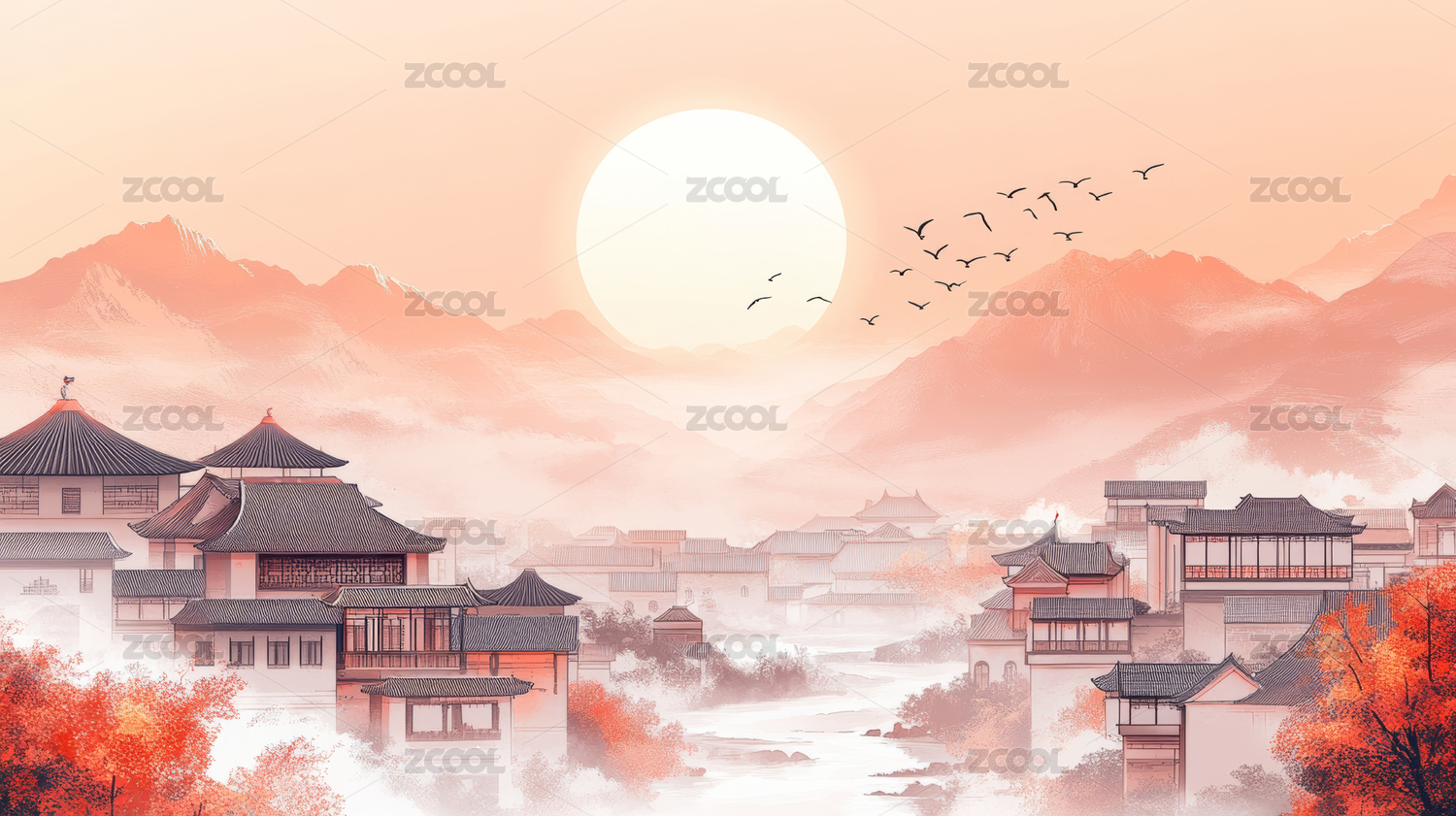 AIGC202404,山水,插画,城市,建筑,抽象,风景,自然,水,湖