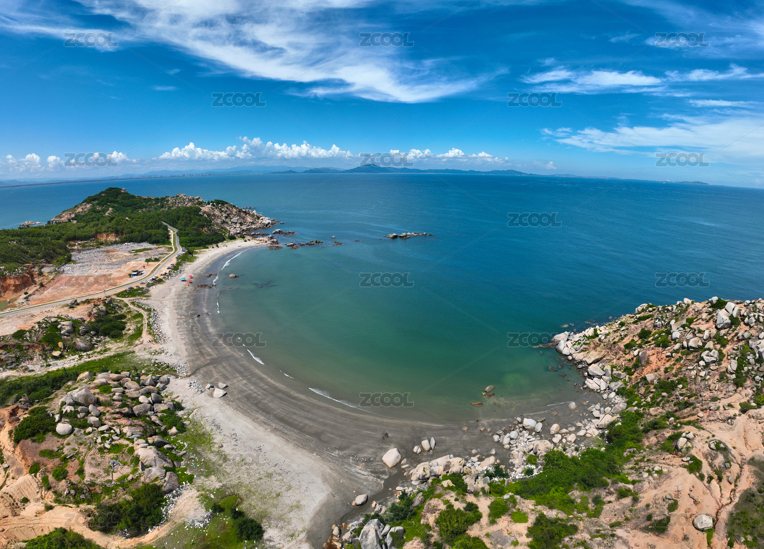 广东汕头南澳岛海滨沙滩自然风光航拍
