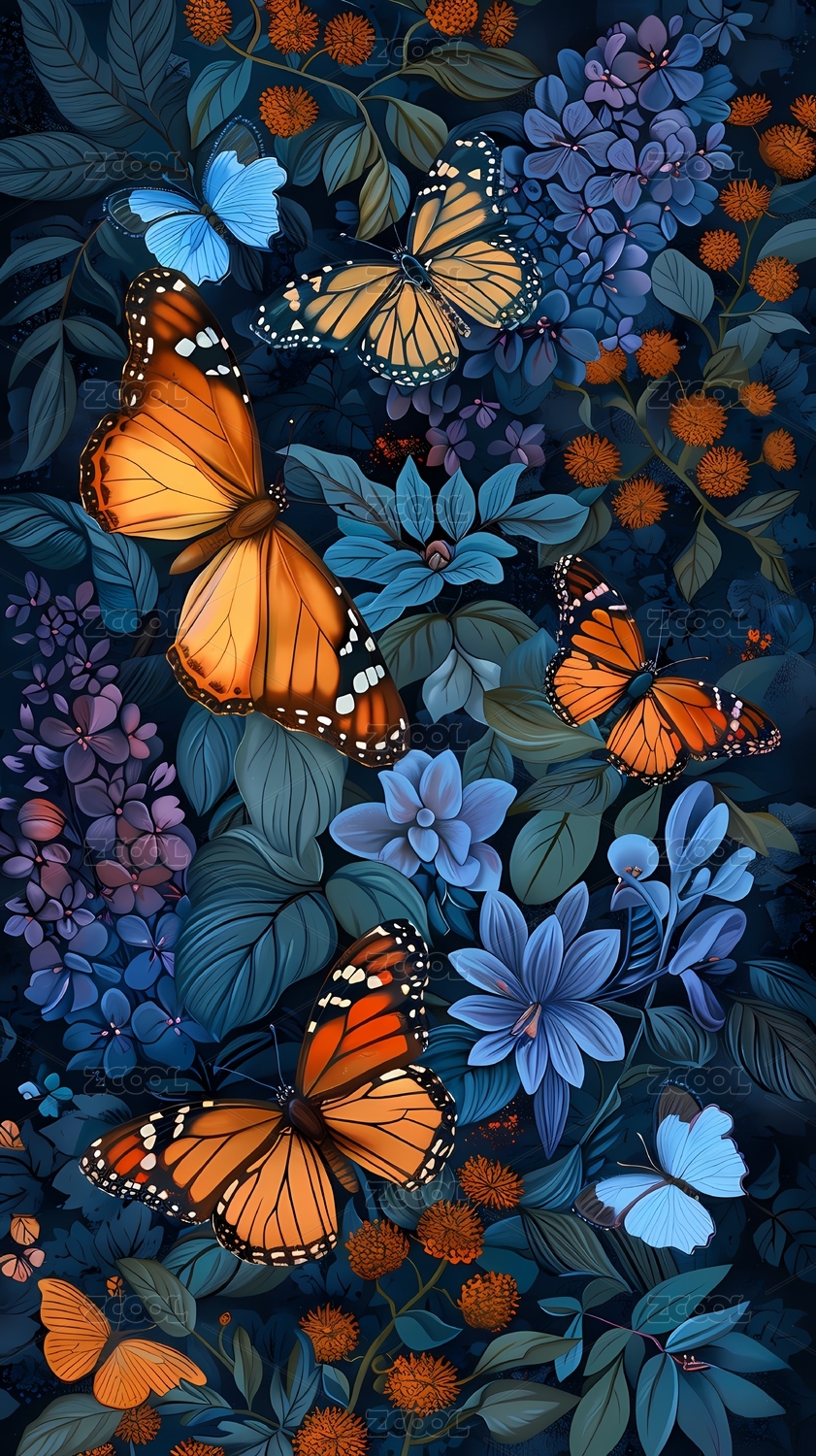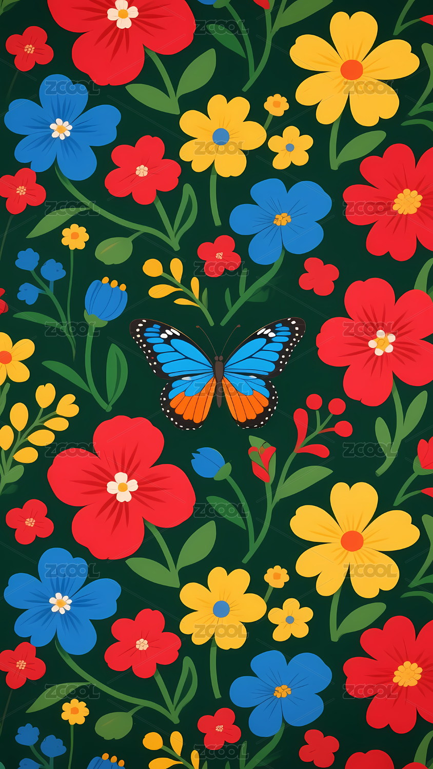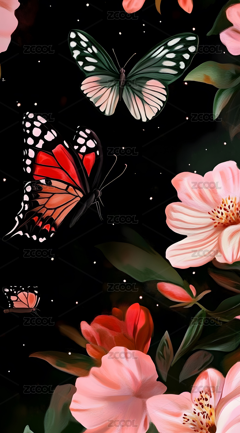 梦幻飞舞煽动翅膀的彩色蝴蝶印花图案