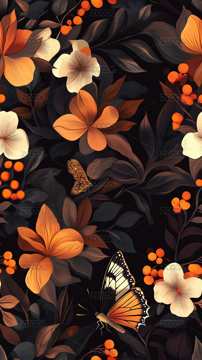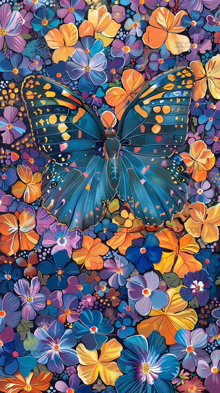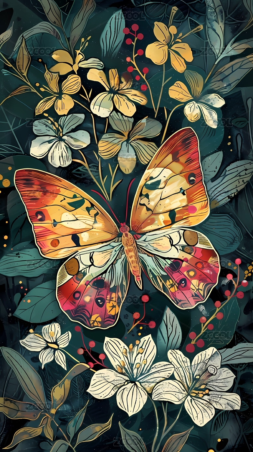梦幻飞舞煽动翅膀的彩色蝴蝶印花图案