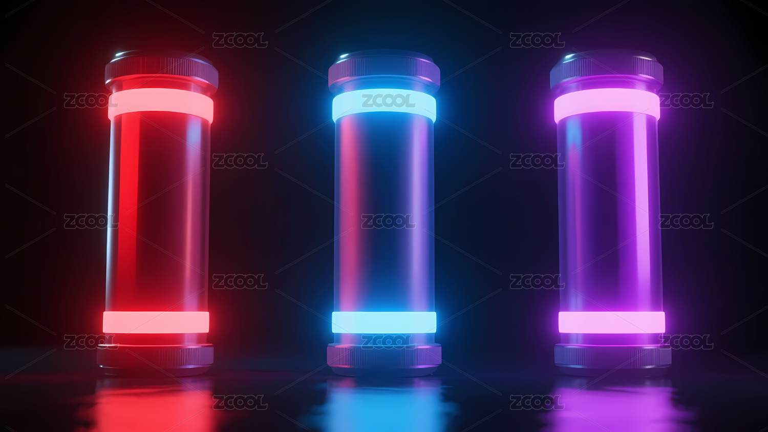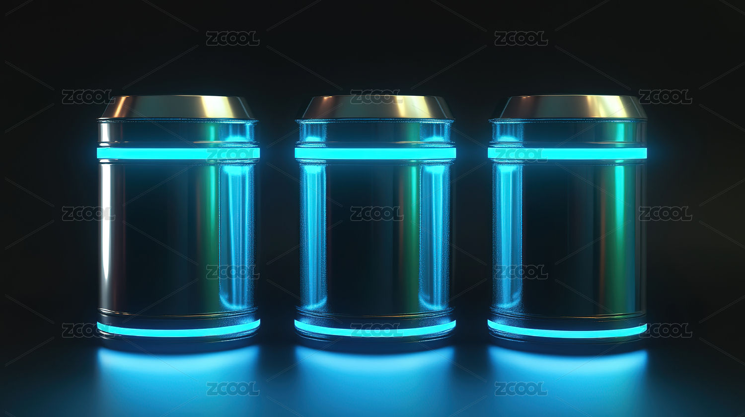 黑暗背景下堆叠的黑色金属易拉罐 三维渲染