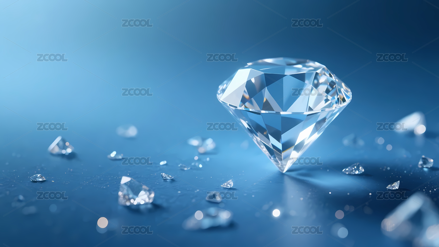 蓝色光芒环绕钻石特写珠宝广告素材图