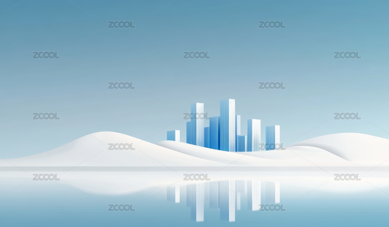 简约蓝色城市倒影
