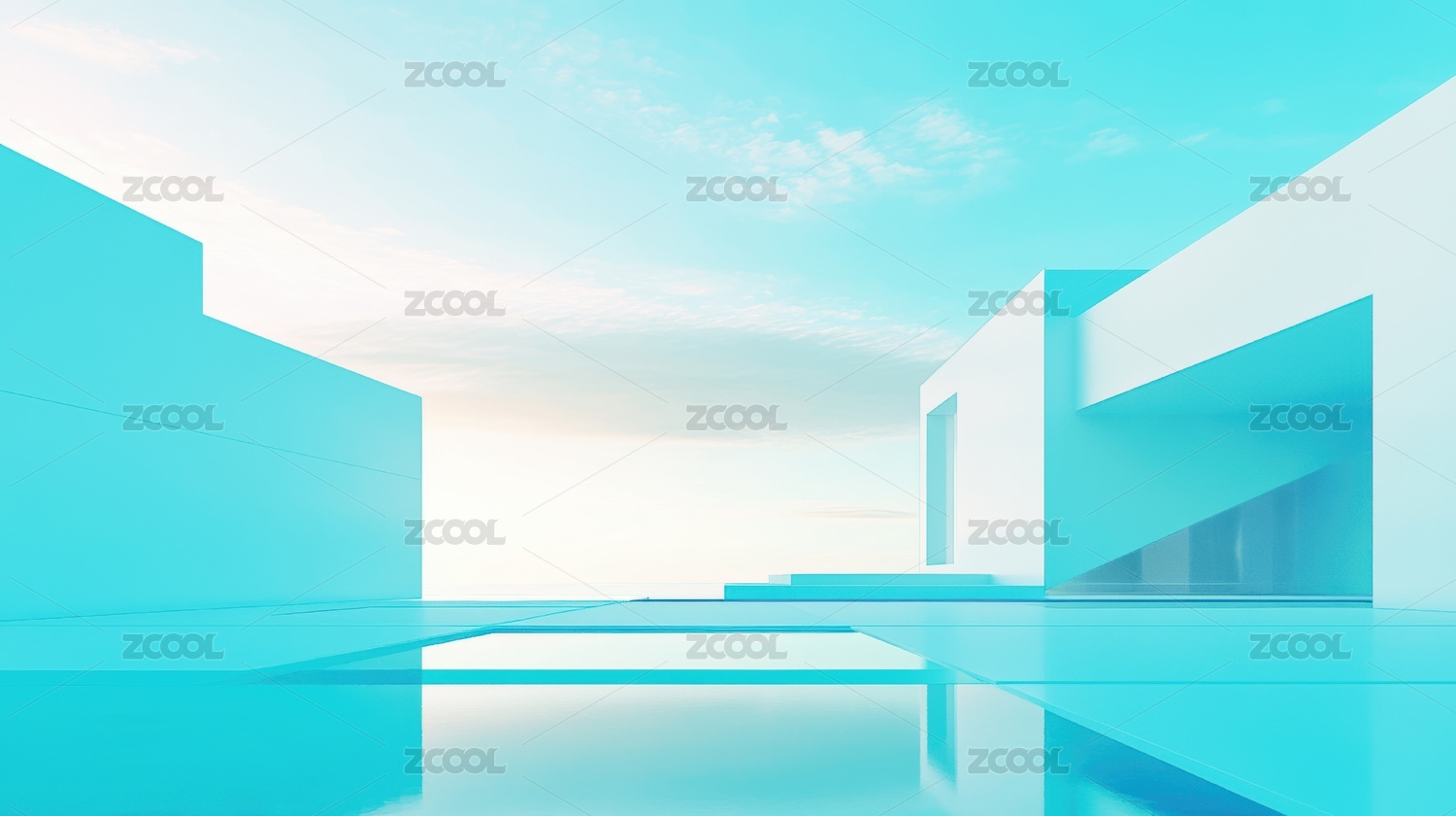 未来简约蓝绿色建筑