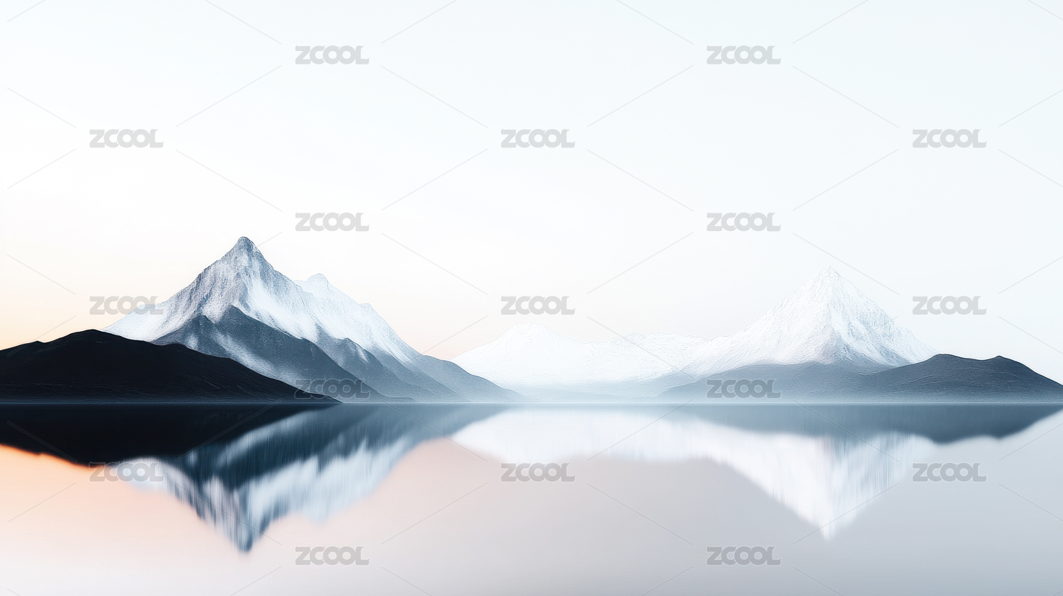冰雪山脉湖面倒影唯美意境