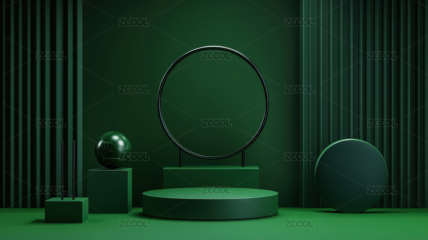 3D,静物台,立体,空间,立体场景,电商,绿色,家装