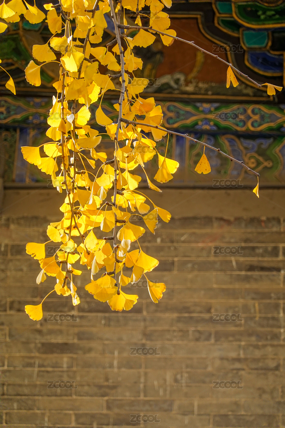深秋时北京紫竹院公园紫竹行宫的千年银杏叶