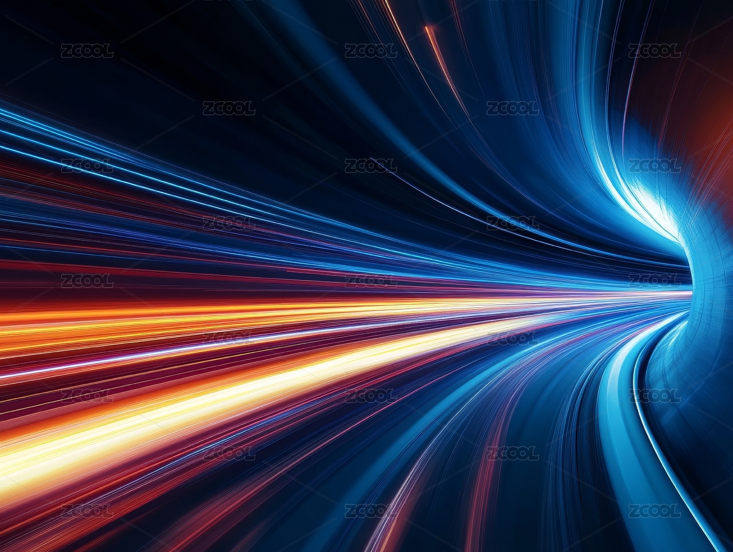 炫彩未来科技感3D蓝橙光流抽象风格背景