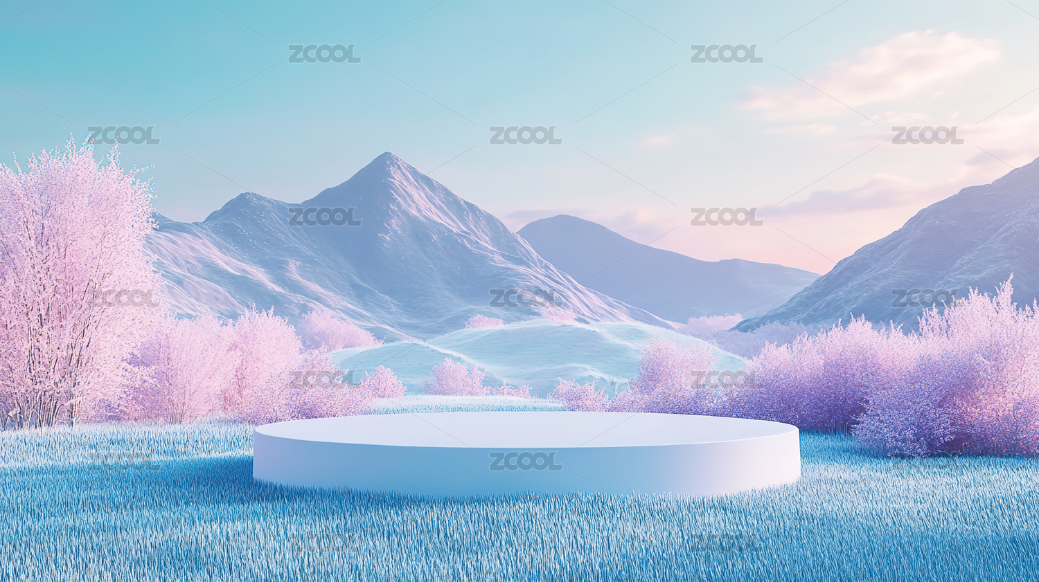 人造空间,三维图形,产品展台,AI数字艺术,插画,展览,几何形状,自然,户外