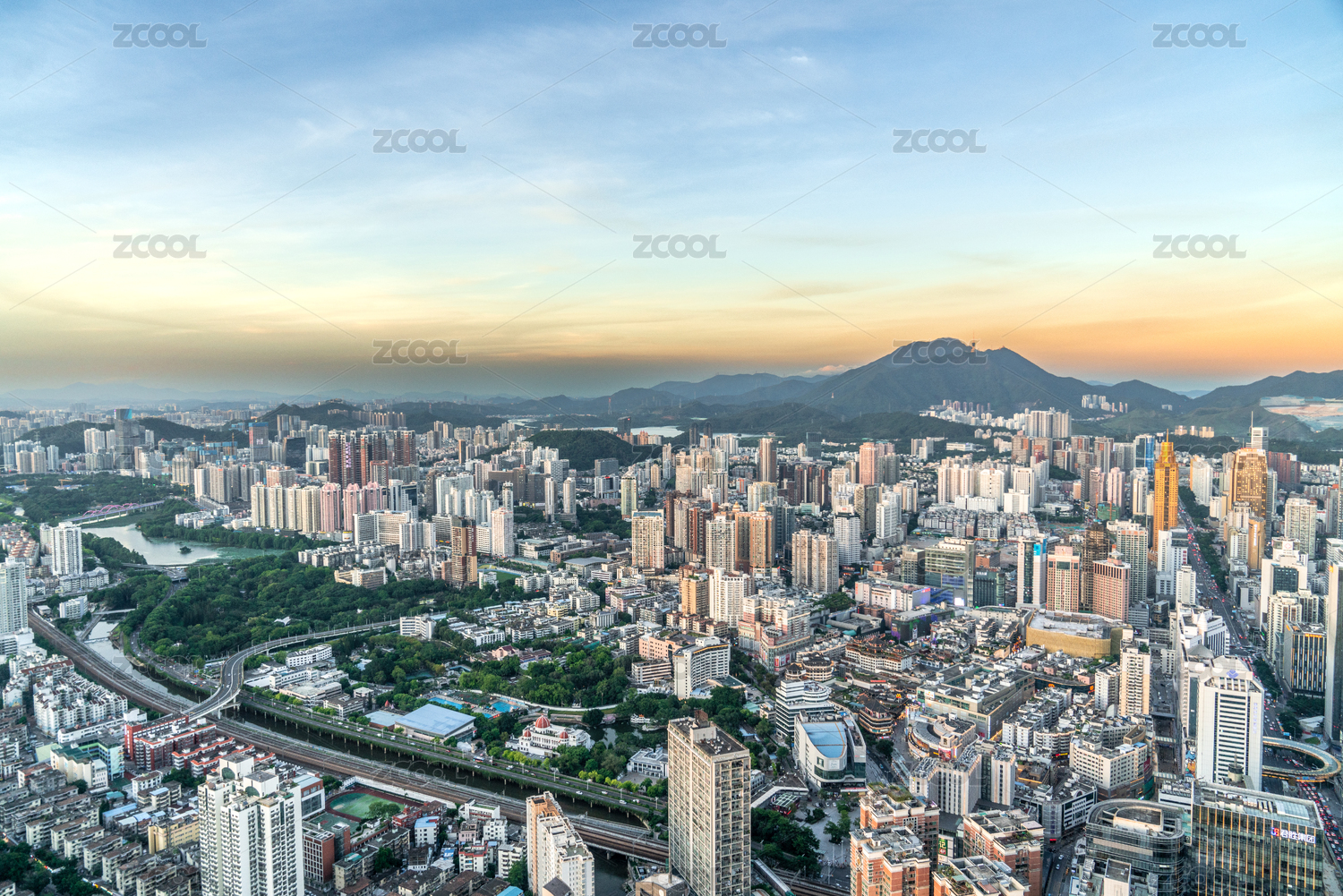 鸟瞰广东深圳全景,深圳城市夜景图。