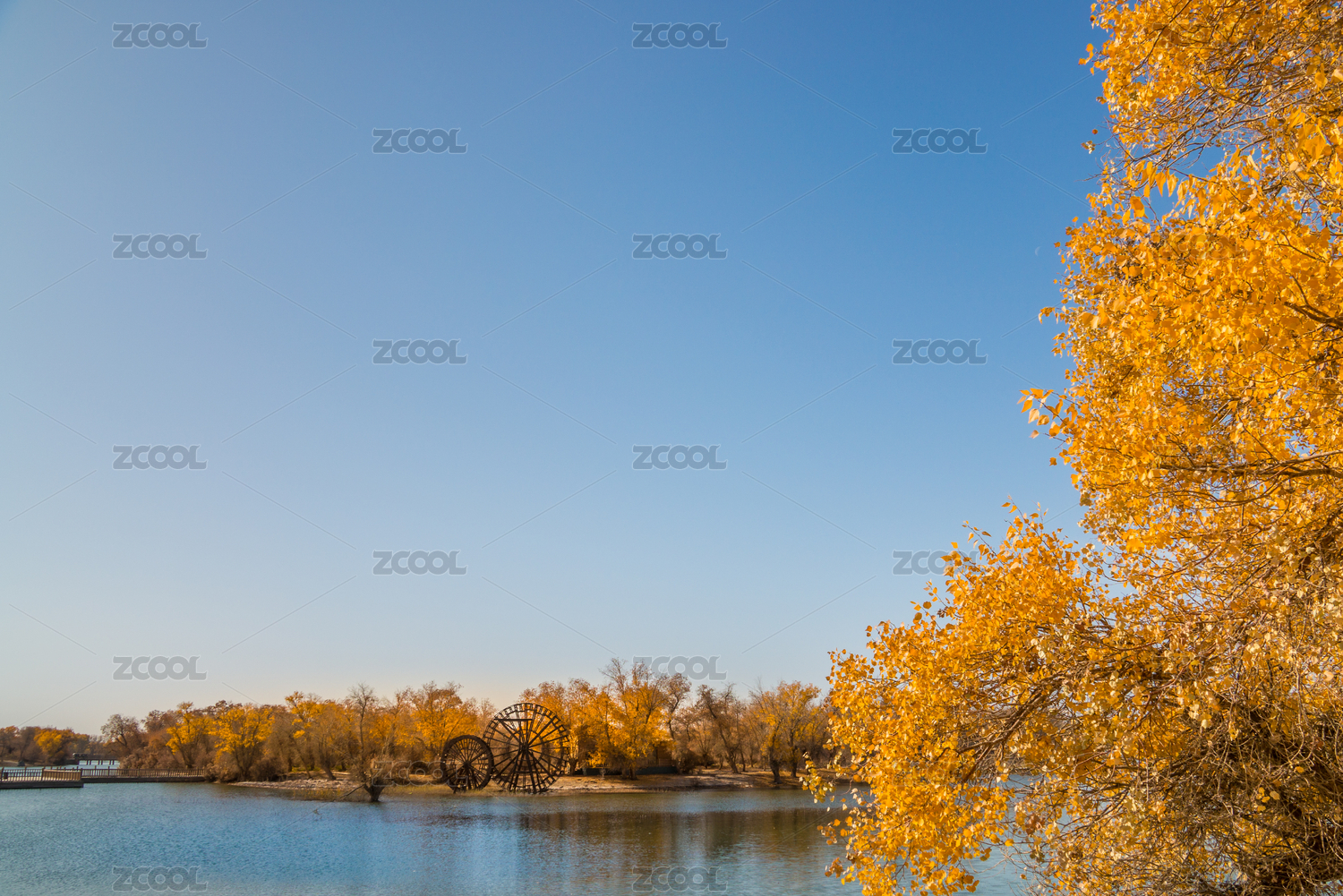 西藏,拉萨,布达拉宫,天空,树,秋天,秋色,金黄色,水,水池