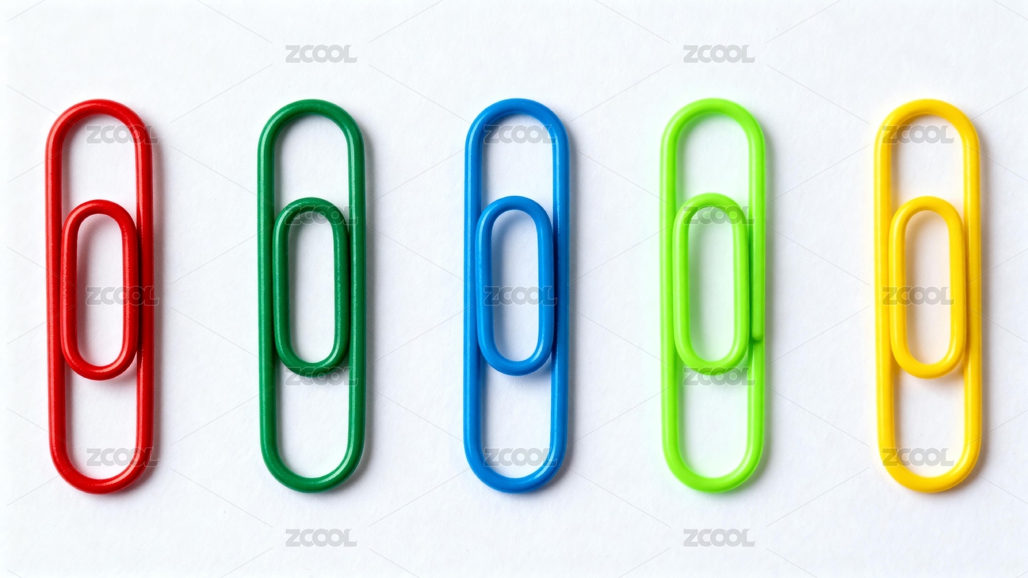 白色背景彩色回形针曲别针