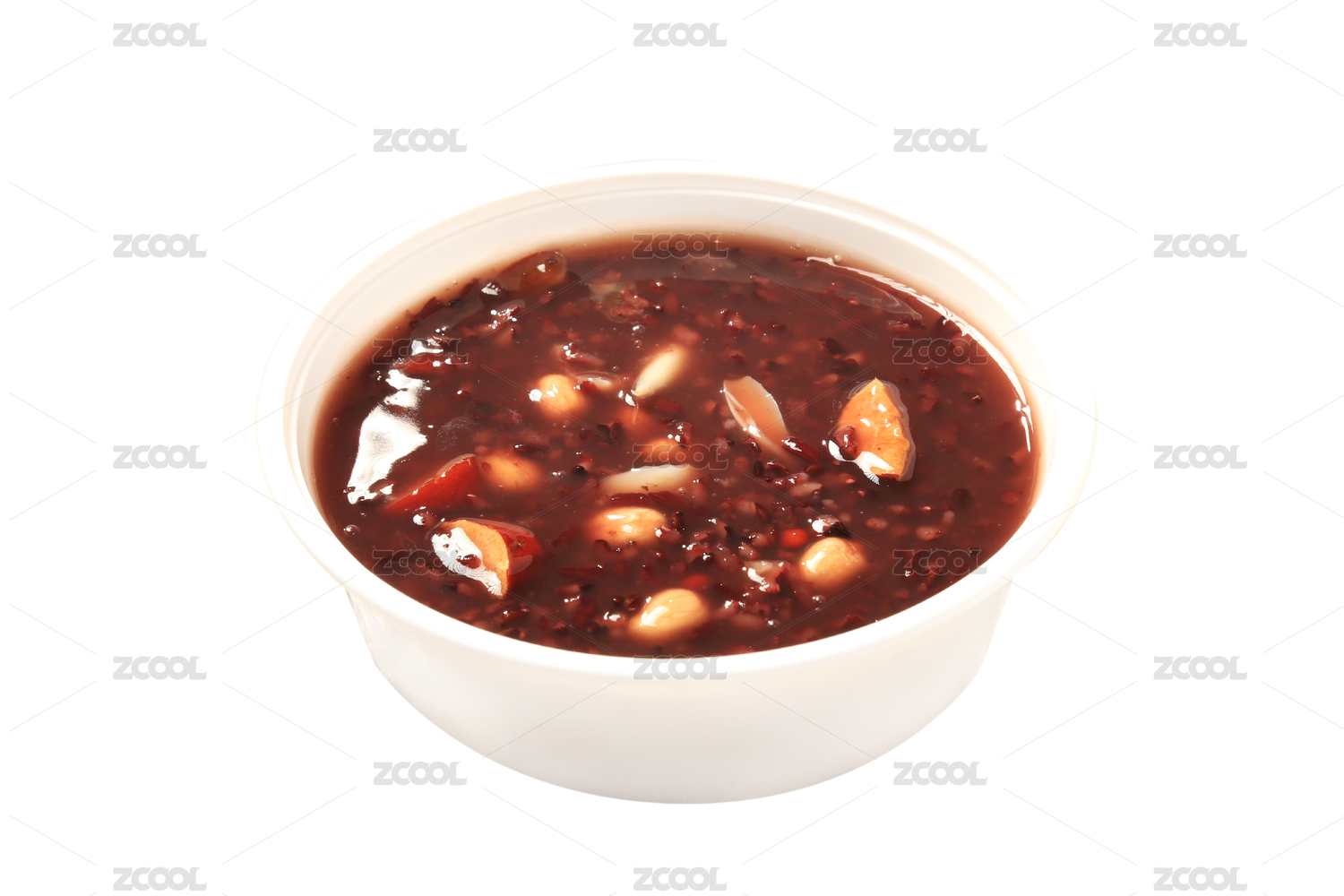 白背景一碗养生黑米八宝粥