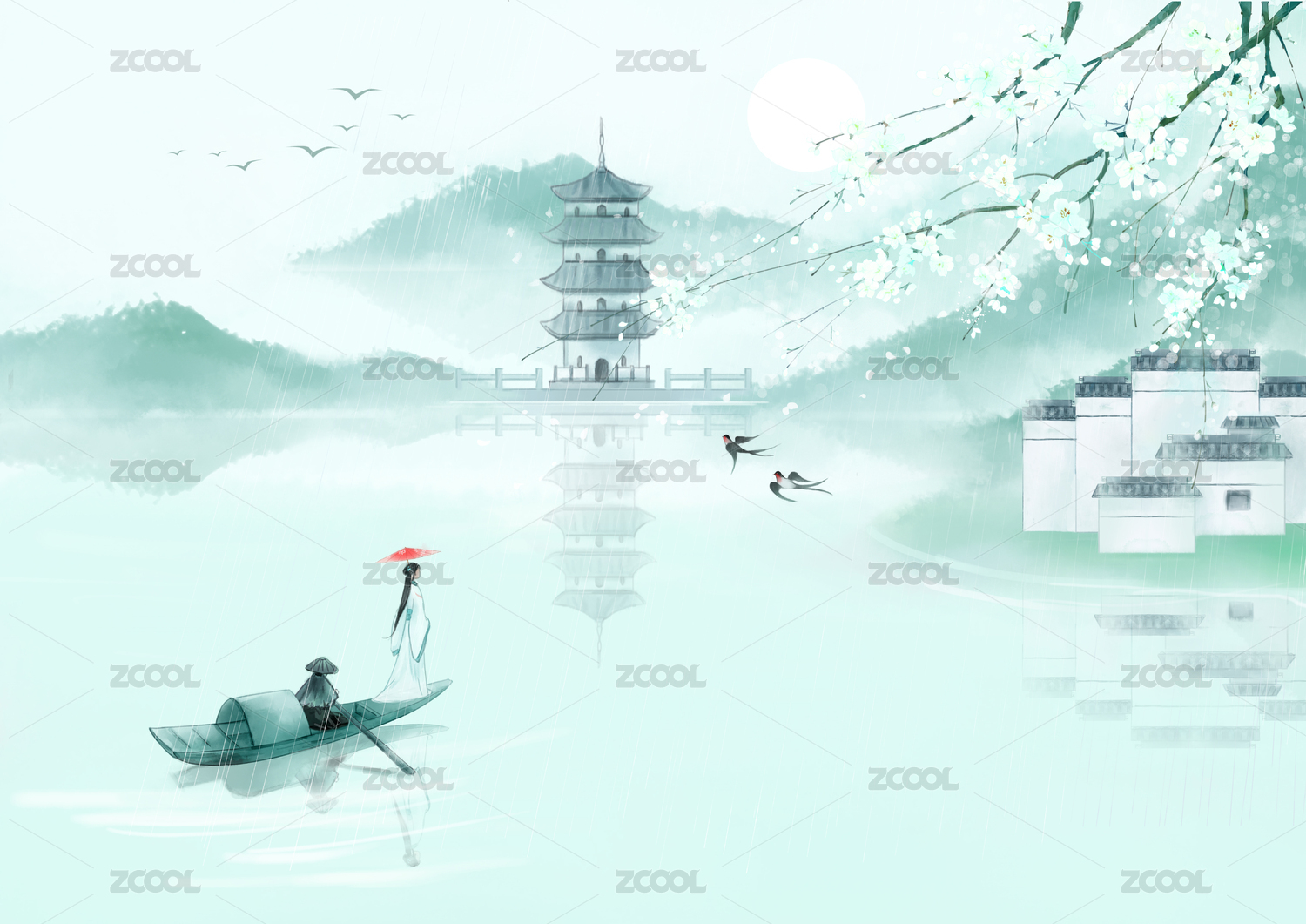 中国风水墨插画风景
