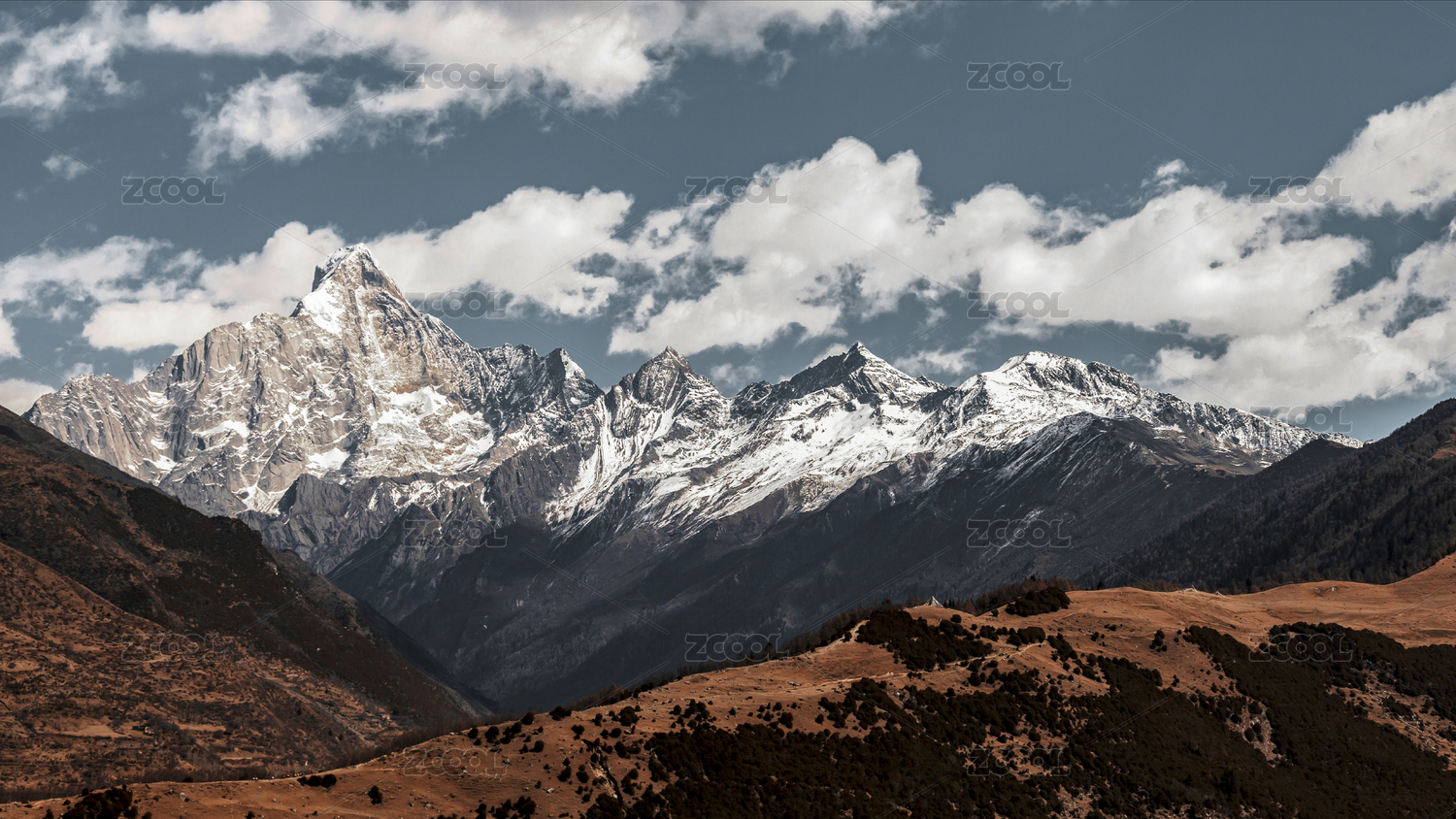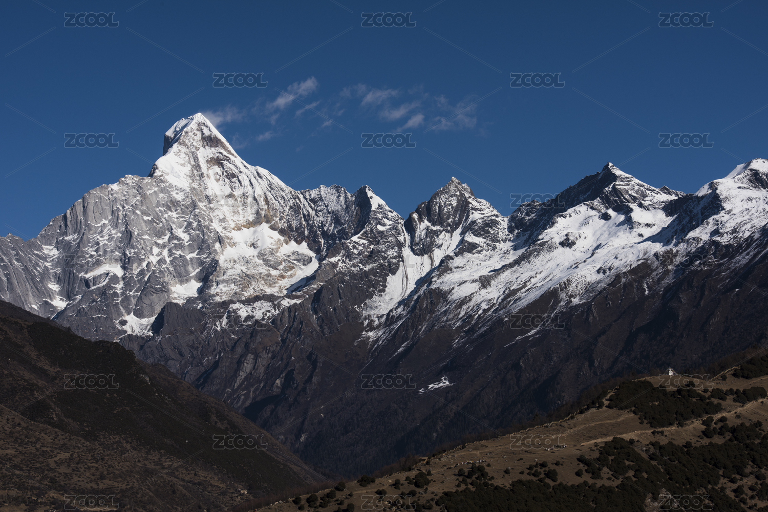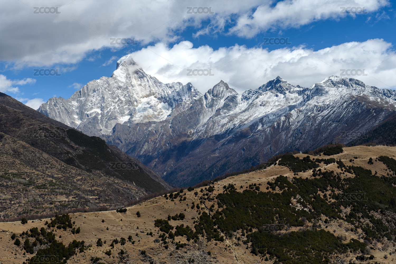 中国,四川省,阿坝州,蓝天,白云,地质地貌,山脉,冬季,小金县,四姑娘山