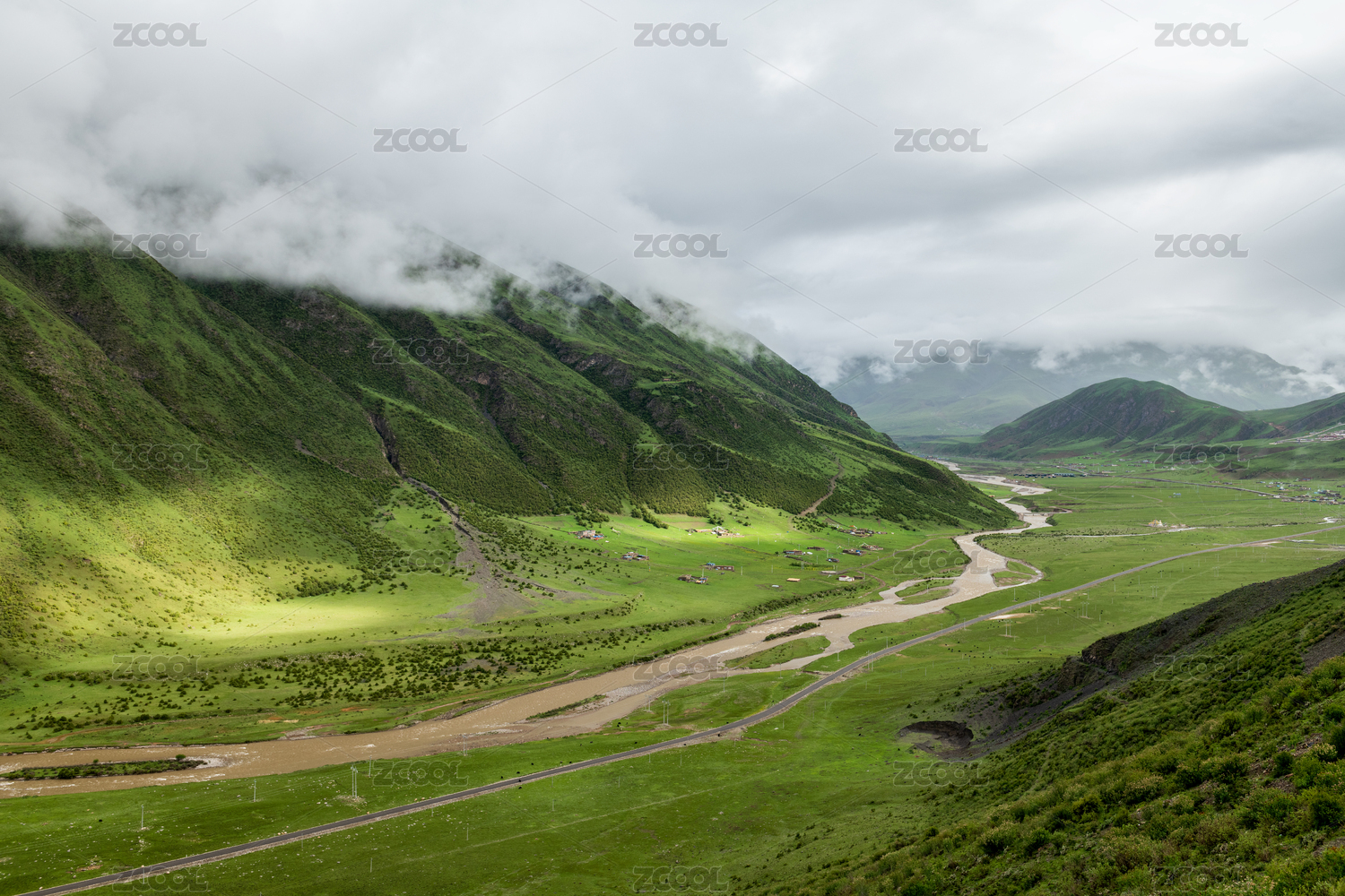 中国西藏那曲市高原山脉河谷风景