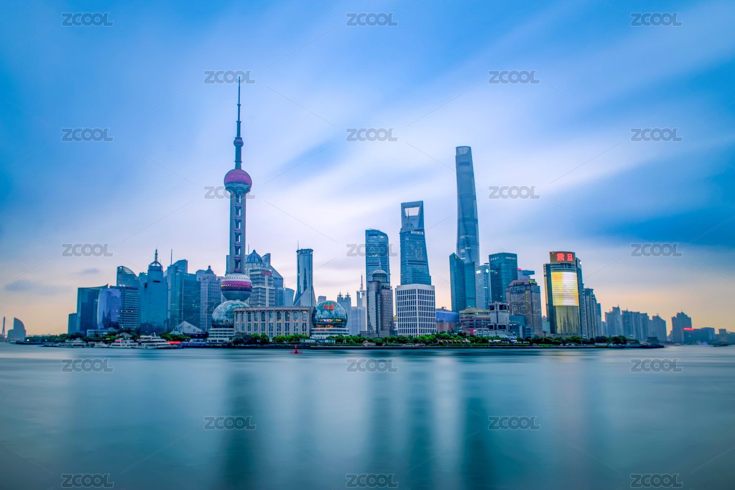 夕阳下的上海陆家嘴金融中心的高楼大厦CB