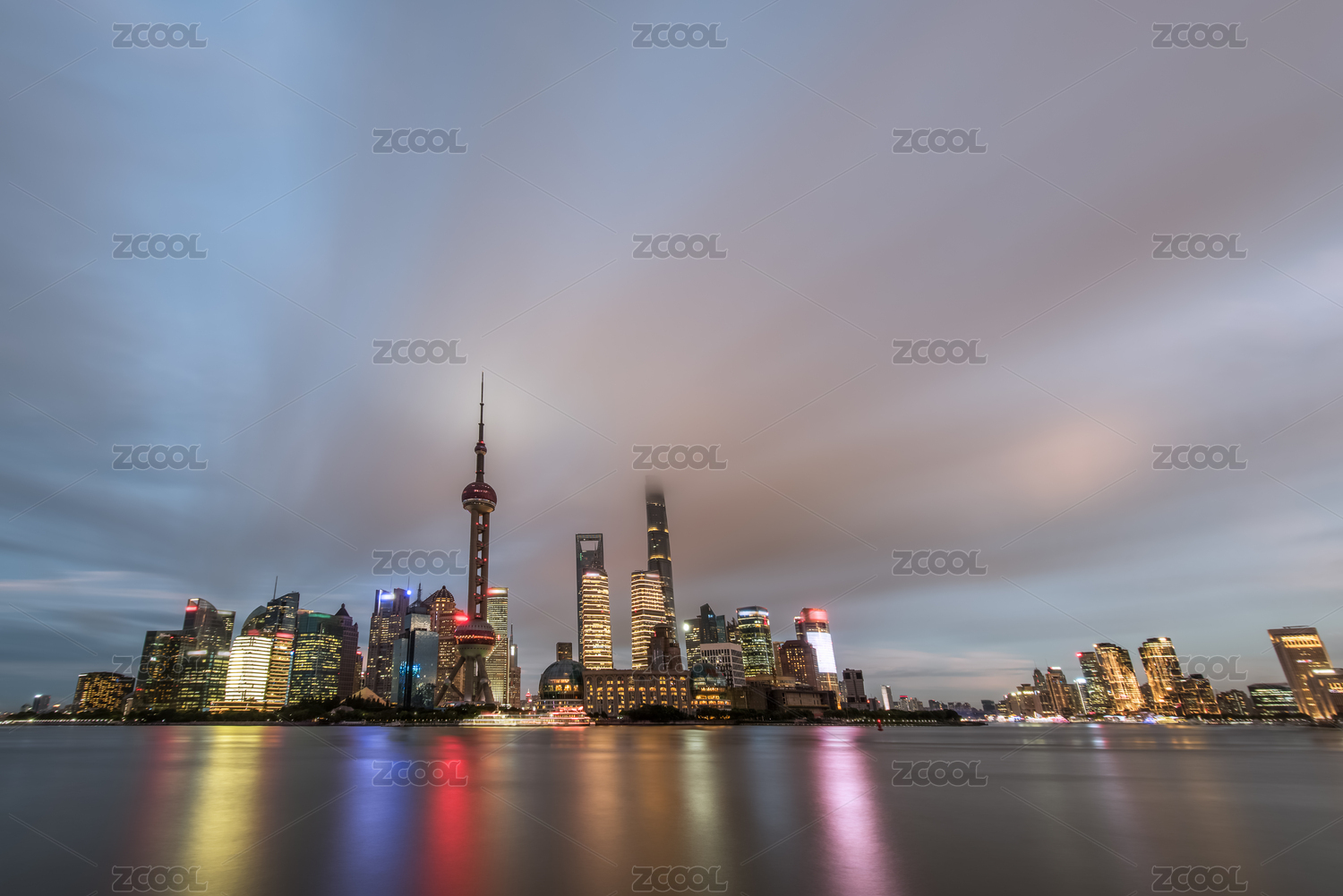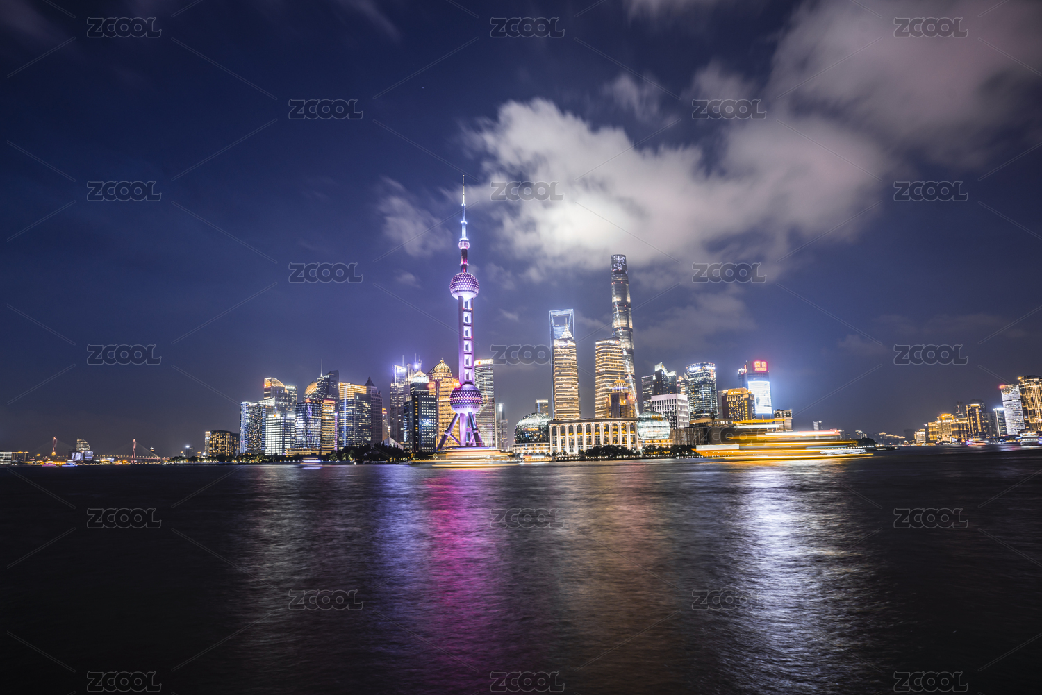 中国上海黄浦江陆家嘴的CBD地标建筑夜景
