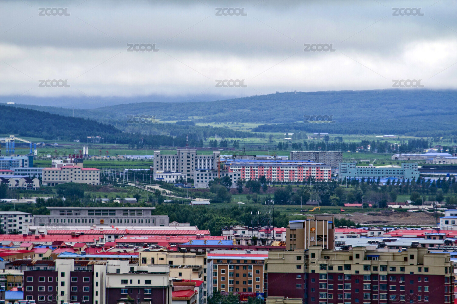 中国内蒙古呼伦贝尔市满洲里城市日落景观