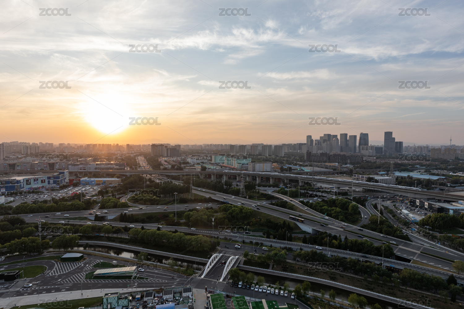 中国北京丽泽商务区玉泉营桥日落晚霞夜景