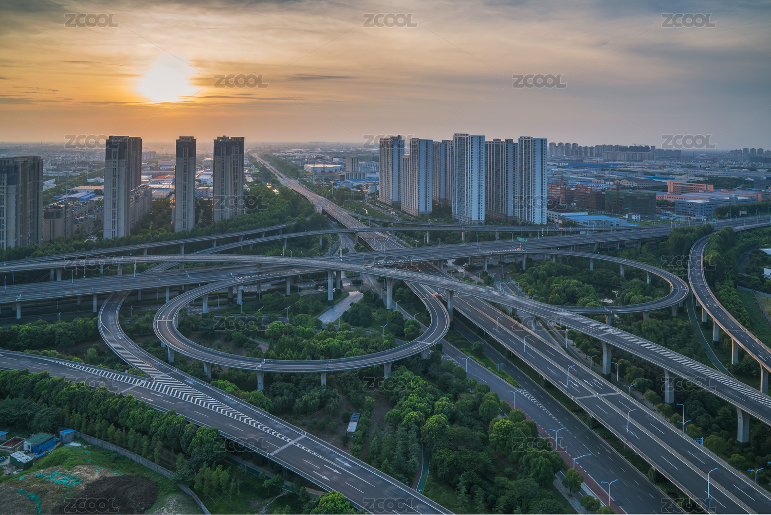 中国上海嘉定虹桥动车运用所沪闵高架日出航拍