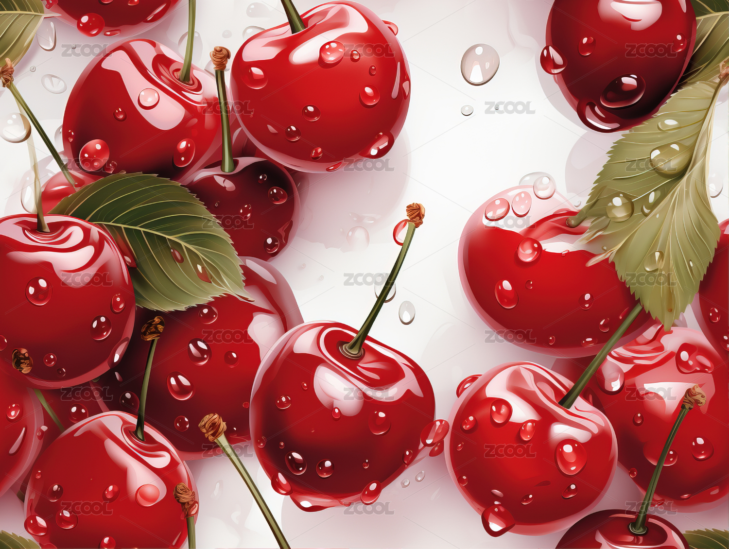 红润樱桃枝头娇艳欲滴,唯美静物绘画