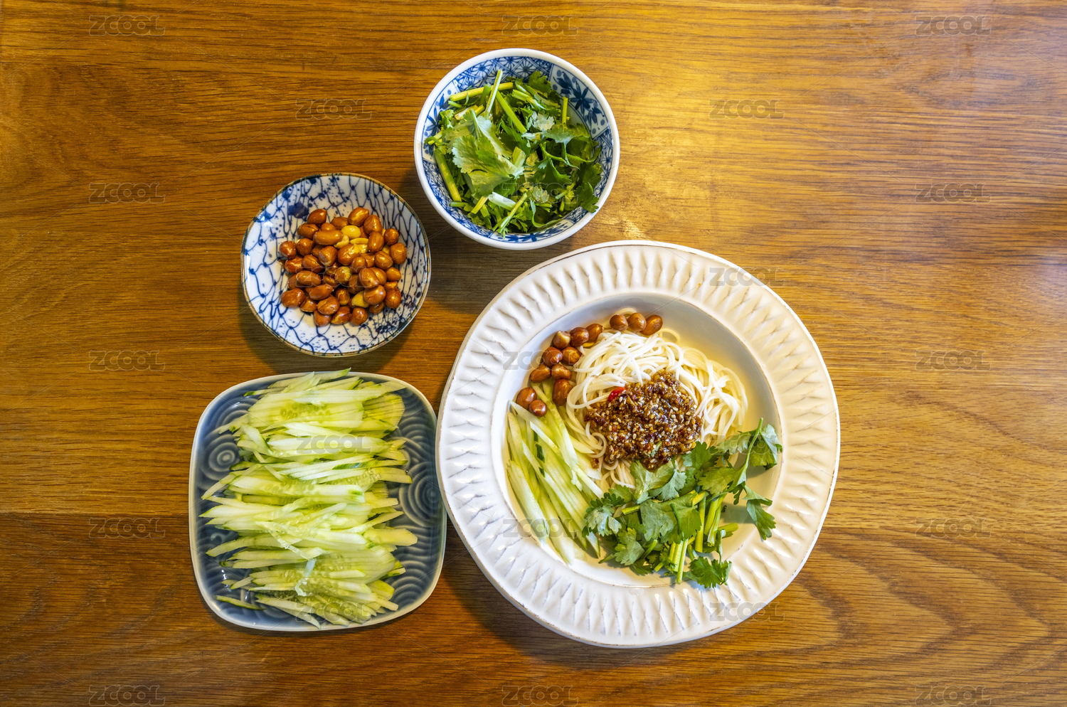 冷面,拌面,凉拌面,凉面,面,美食,食物,黄瓜丝,花生米,主食