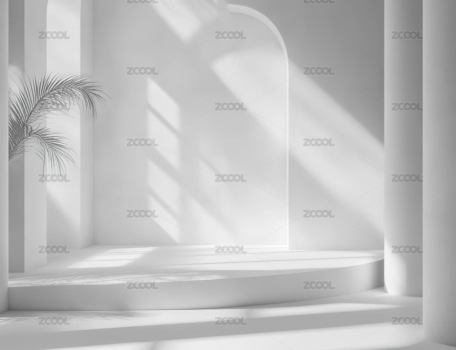 白色清爽简约棕榈展台电商三维空间