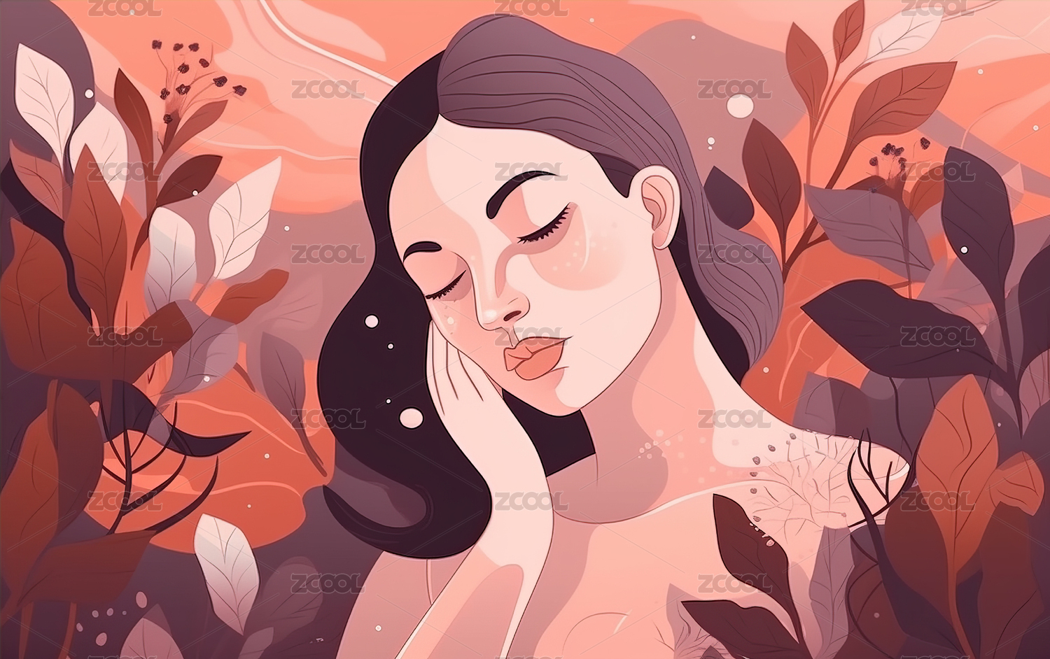 手绘卡通动感唯美的时尚女孩扁平化插画