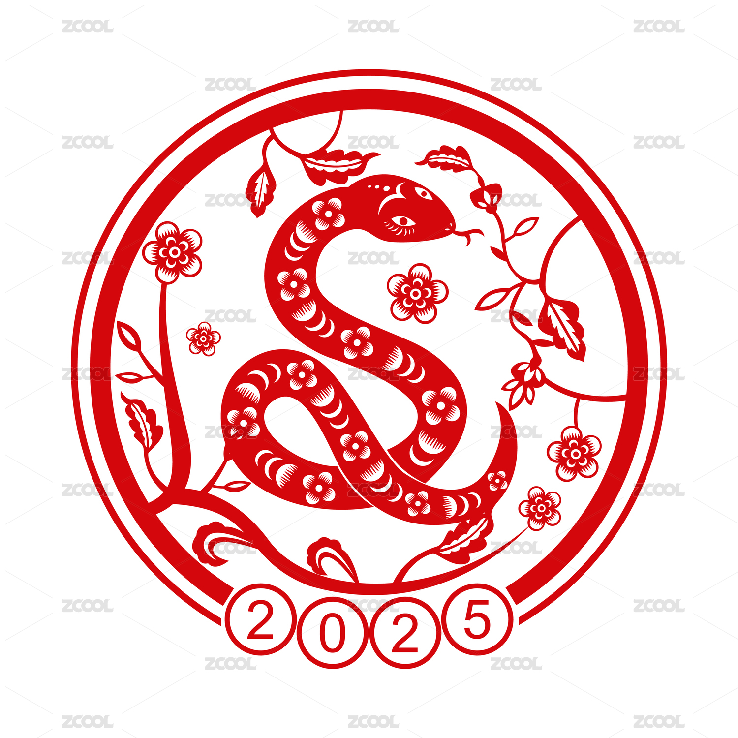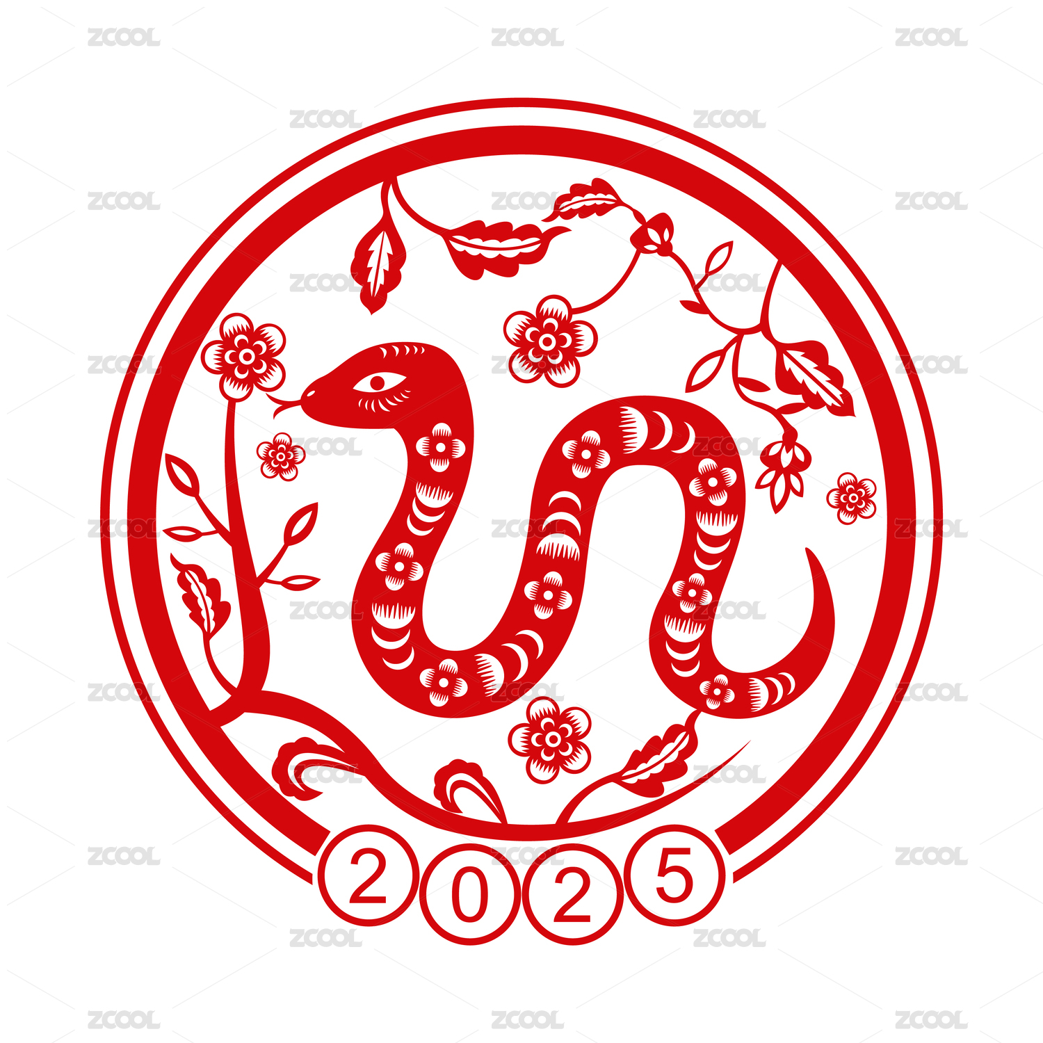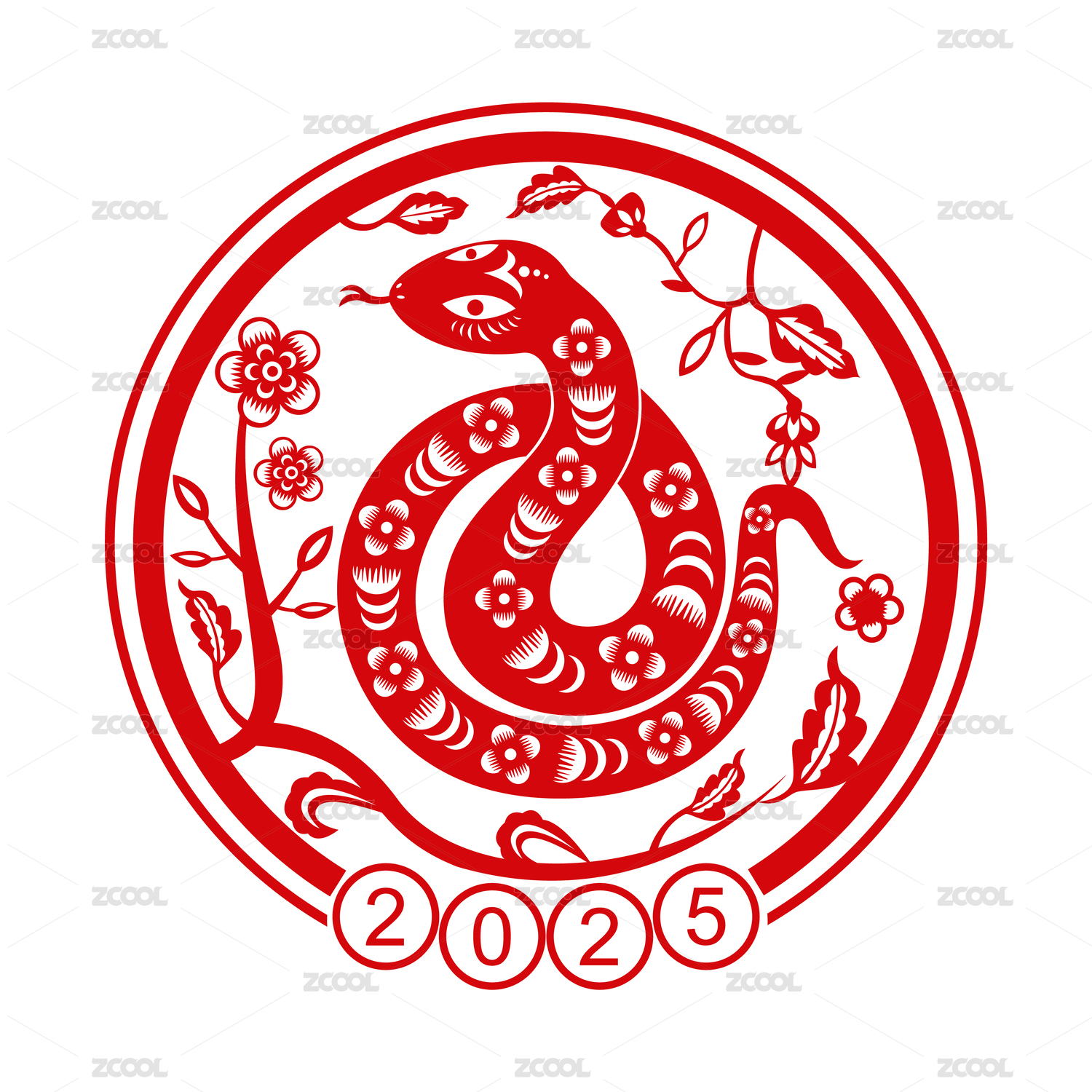2025蛇年春节十二生肖巳蛇剪纸风格