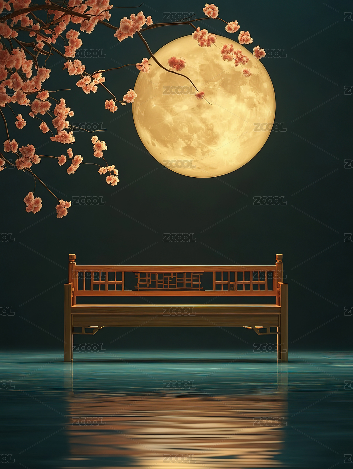 中秋月夜意境中式电商展台国风场景背景
