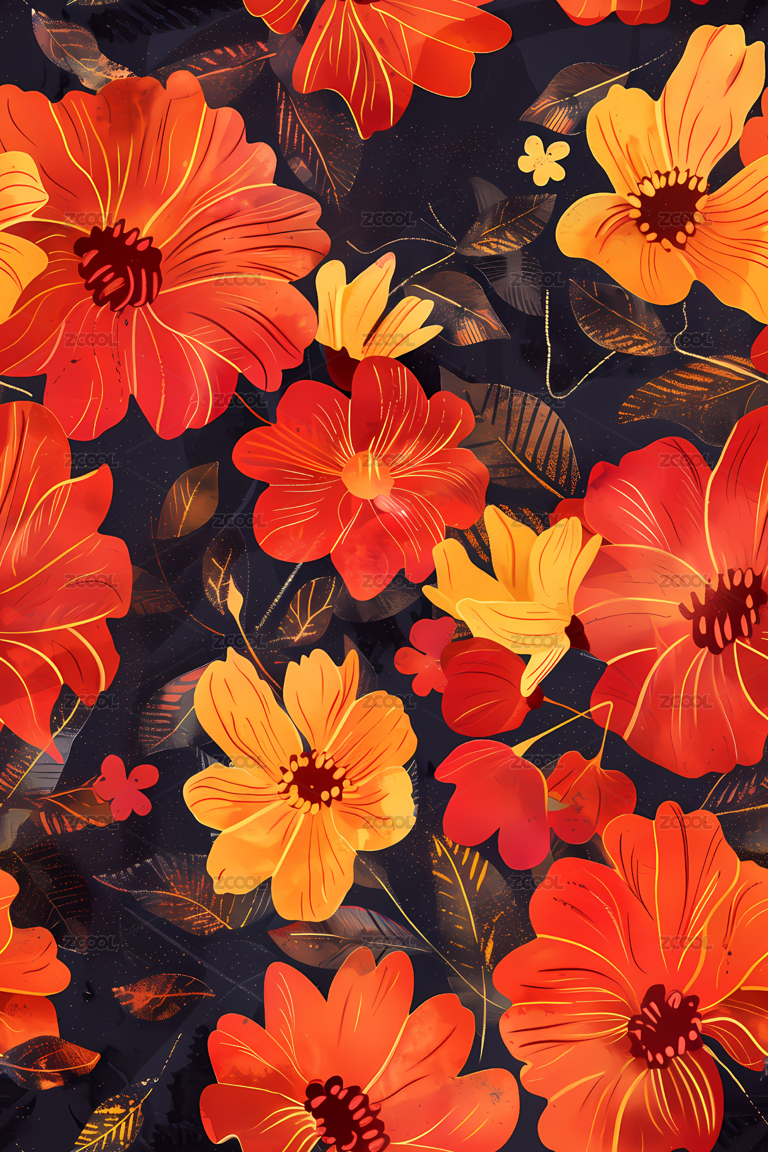 彩色线条花卉重复无缝图案纺织品装饰背景