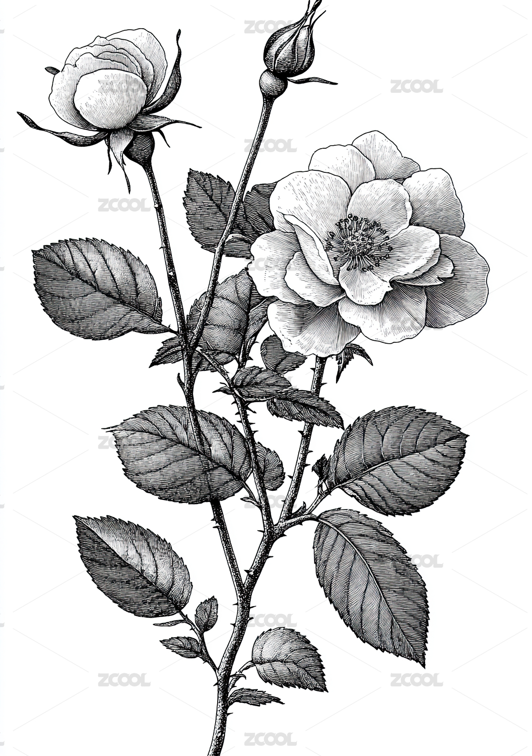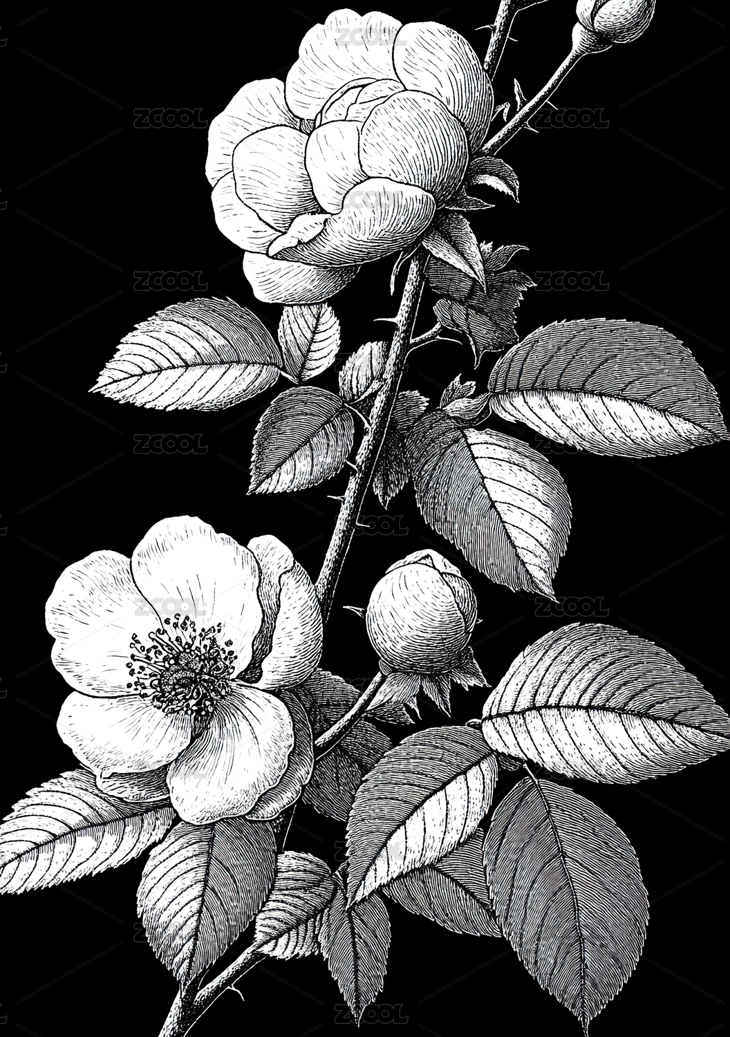 黑白玫瑰插画