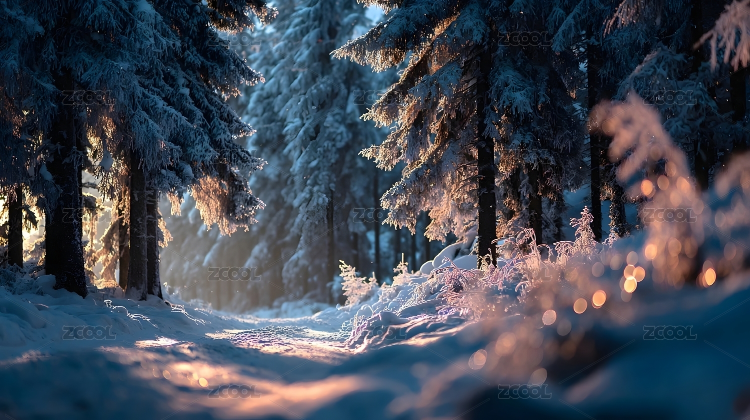 冬天,森林,树木,照明,灯光,雪,小路,自然,户外,夜晚