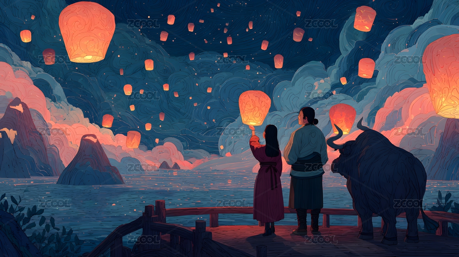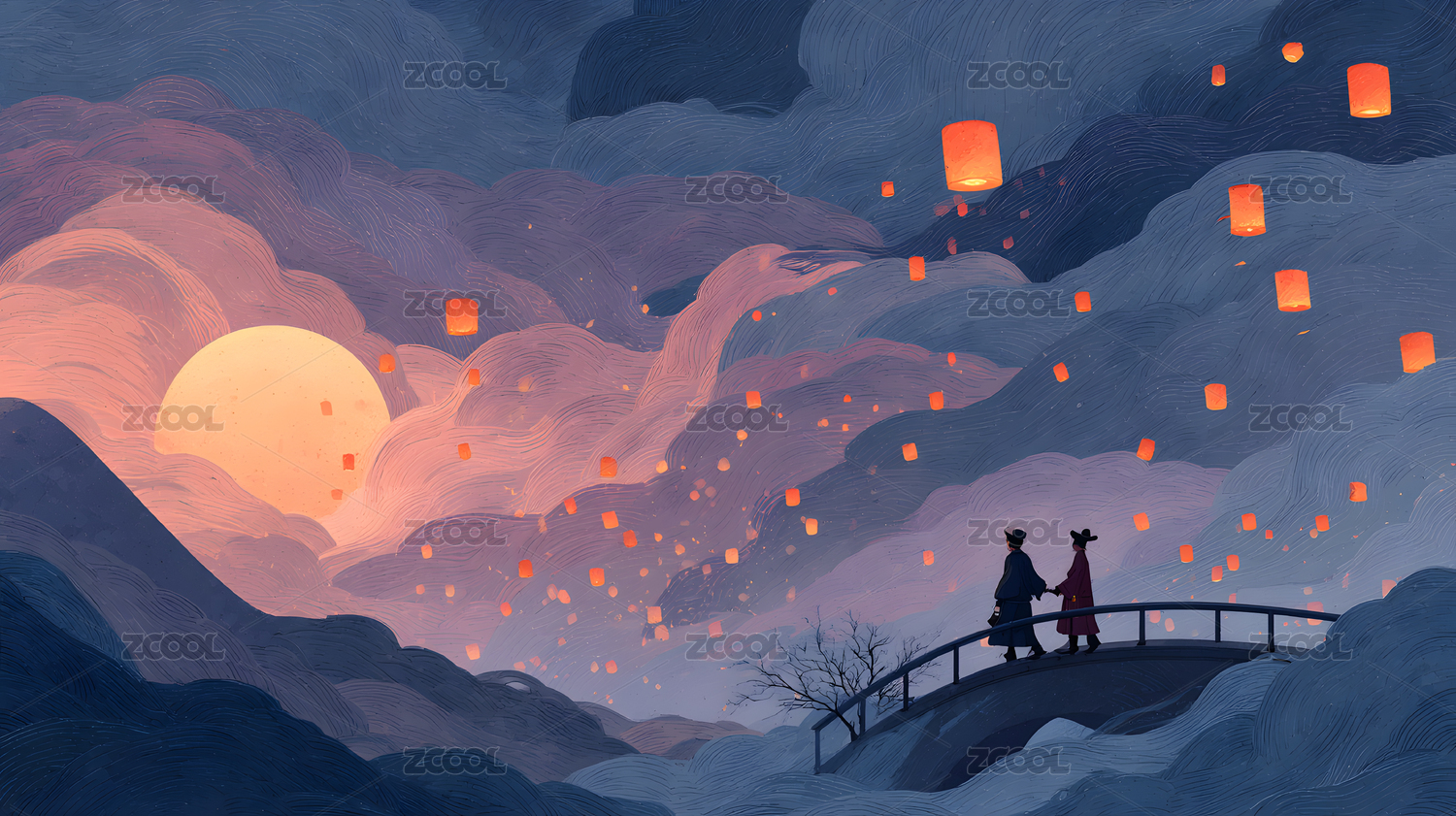 七夕情人节节日恋爱祝福浪漫唯美艺术插画