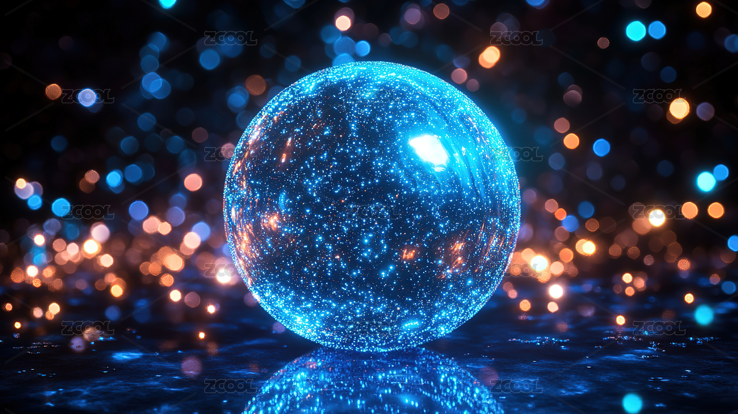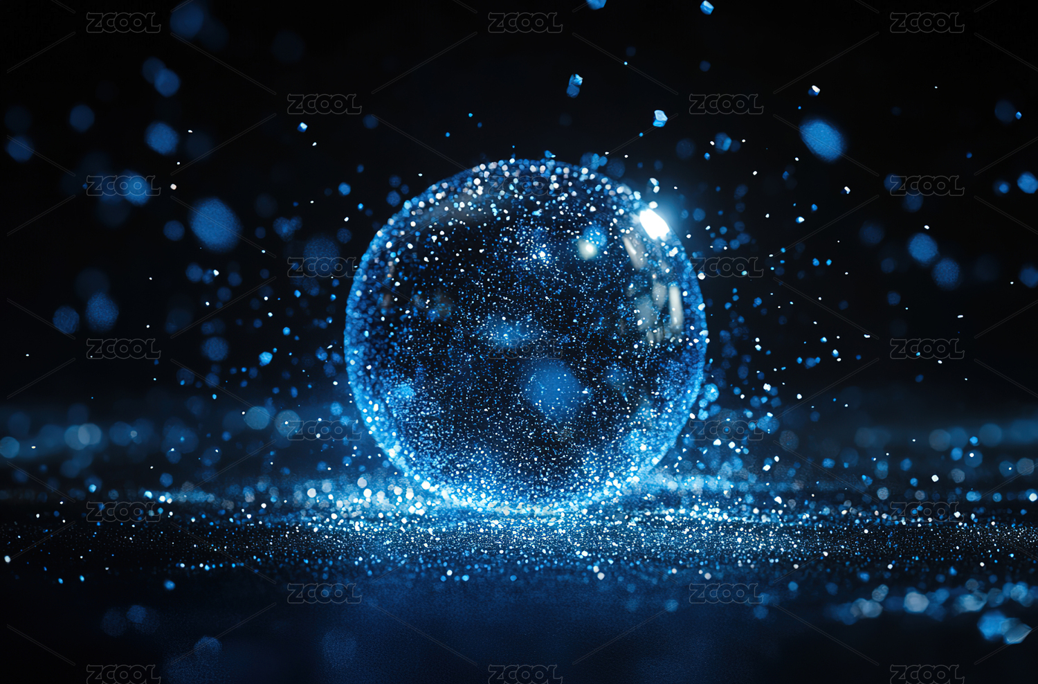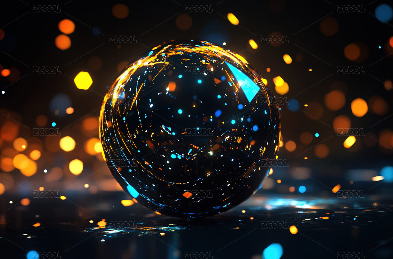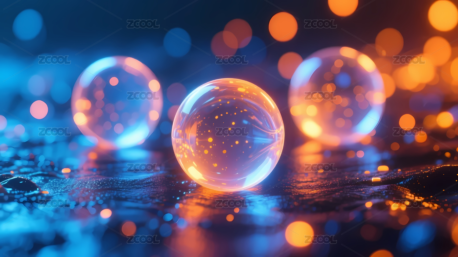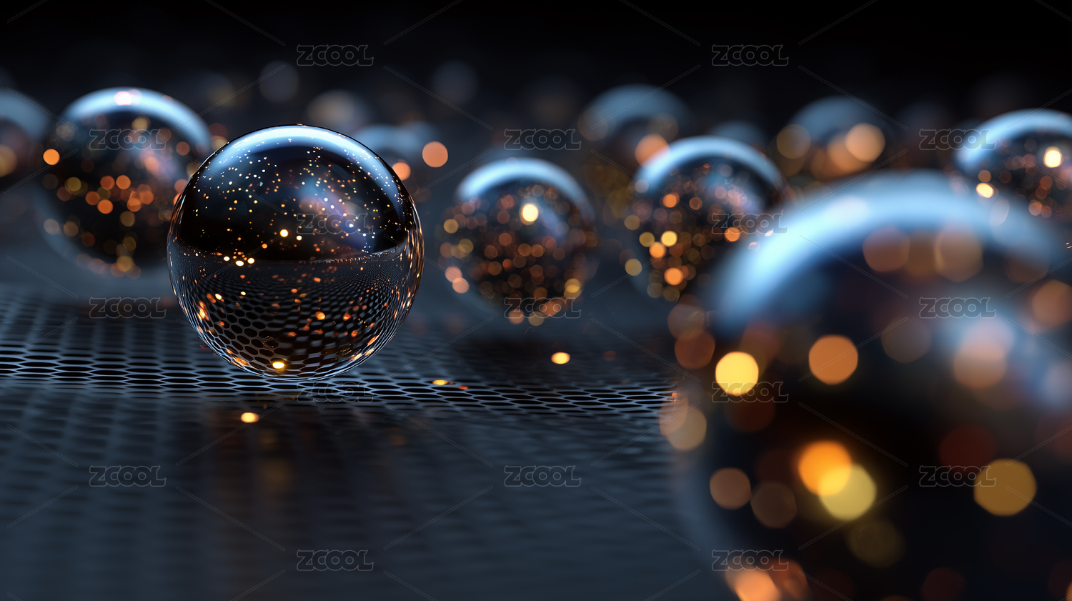 透明,球体,光斑,金色,蓝色,灯光,散景,未来,科技,梦幻