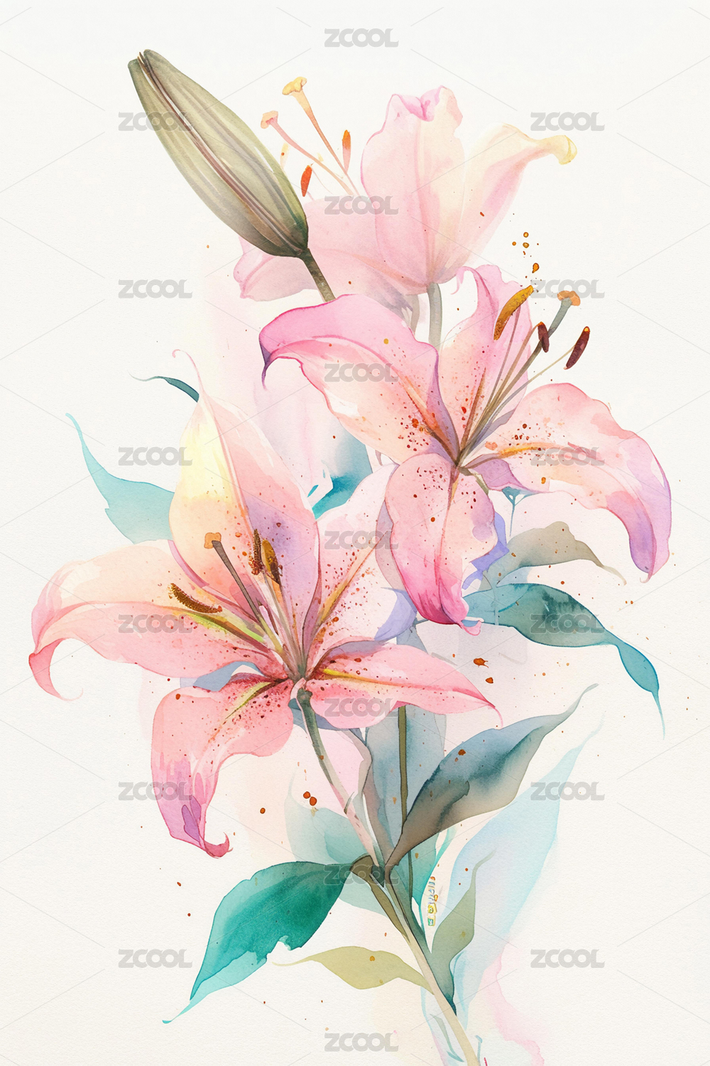 白色背景,水彩,插画,百合,百合花,花,插图,背景,壁纸,鲜花