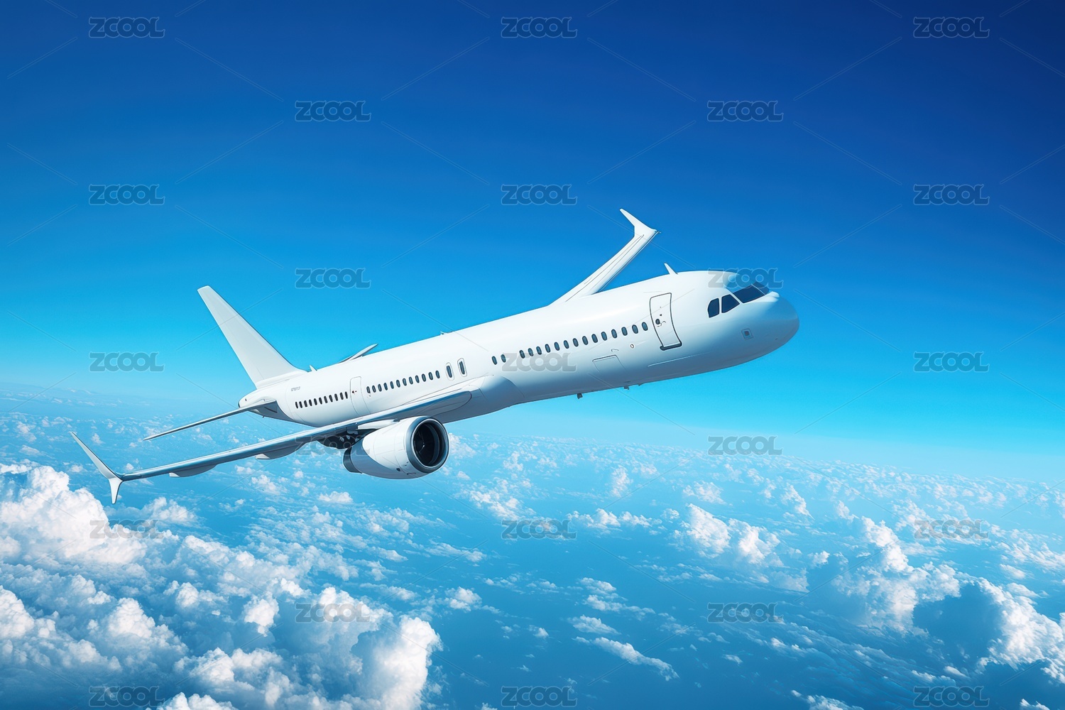 亚洲夏季商用客机飞行在美丽晴朗的天空
