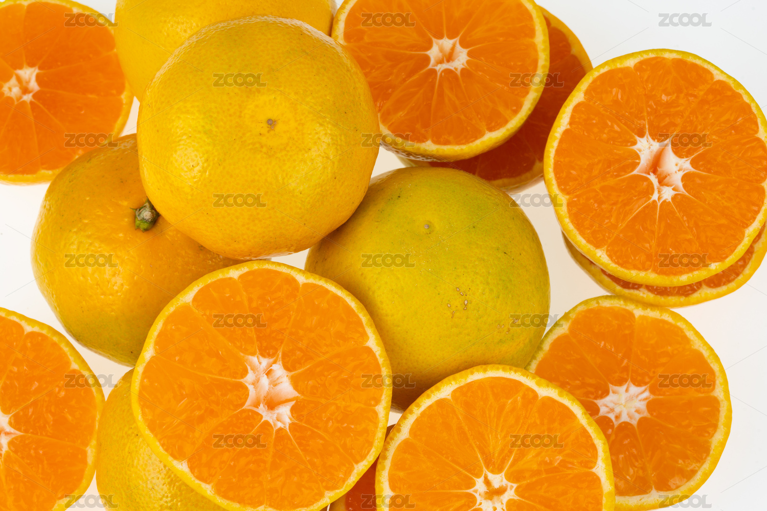 橘子背景上放着一个完整的切成一半的橘子果瓣