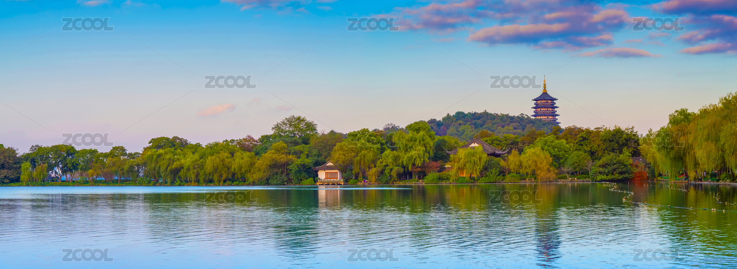 杭州西湖山水风光和古建筑景观