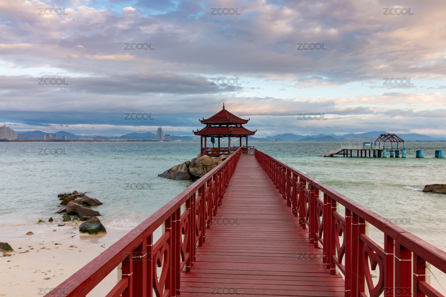 中国海南三亚海棠湾蜈支洲情人桥大海白云