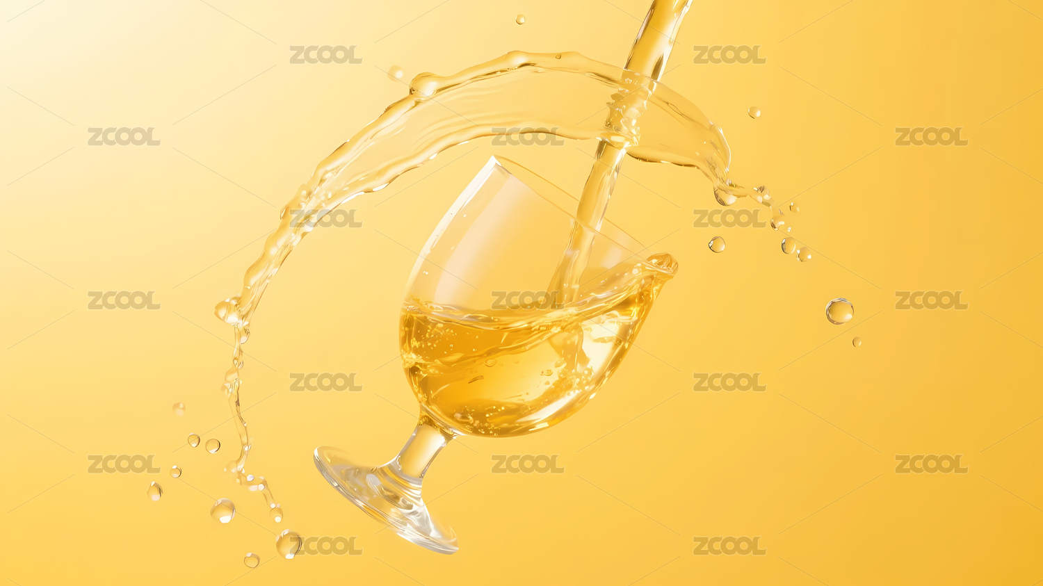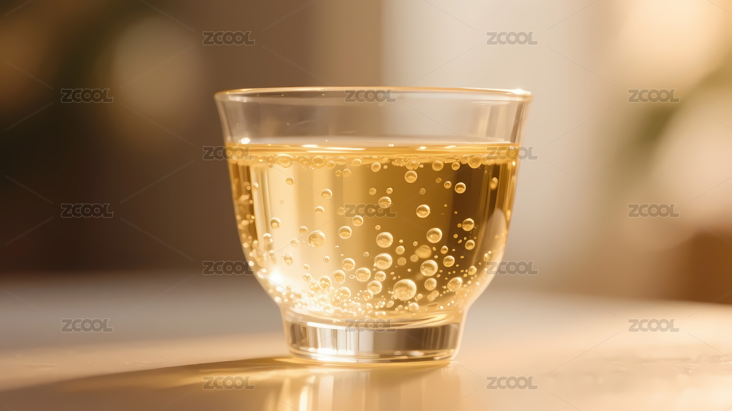 布满冰块的酒杯中的清凉白葡萄味预调酒