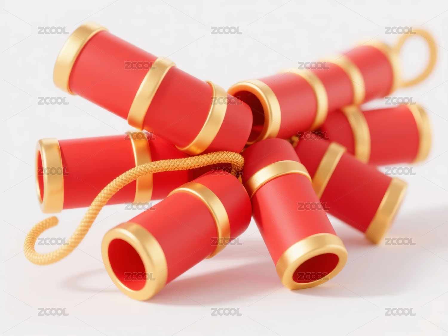鞭炮模型红金色春节装饰场景